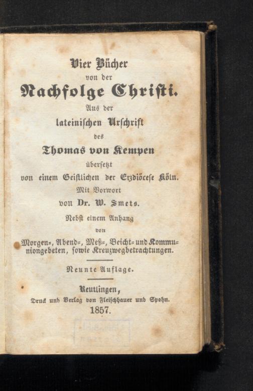 Morgen-, Abend-, Meß-, Beicht- und Kommuniongebeten, sowie Kreuzwegbetrachtungen.