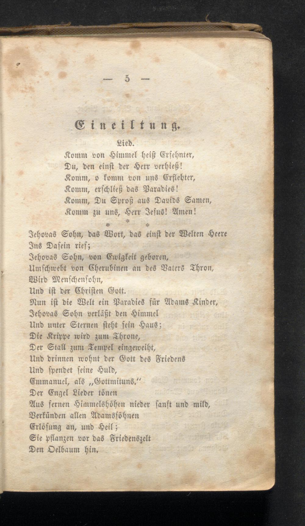 Komm von Himmel heiß Erfehnter, Du, den einst der Herr verhieß! Komm, o fomm von uns Erflehter, Komm, erschließ das Paradies!