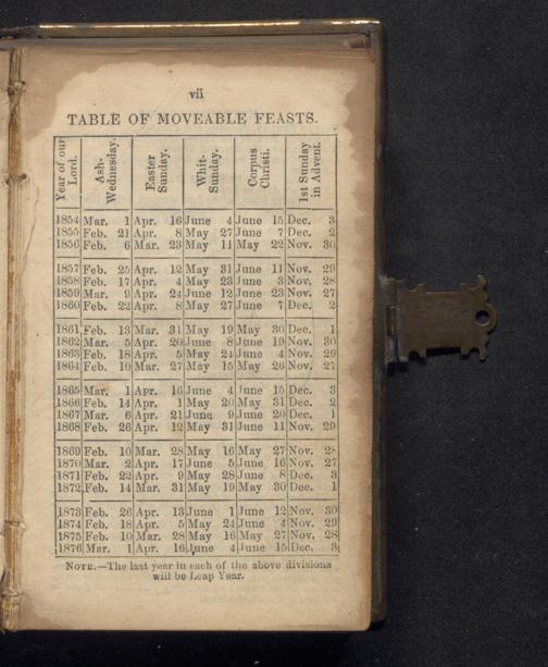TABLE OF MOVEABLE FEASTS.