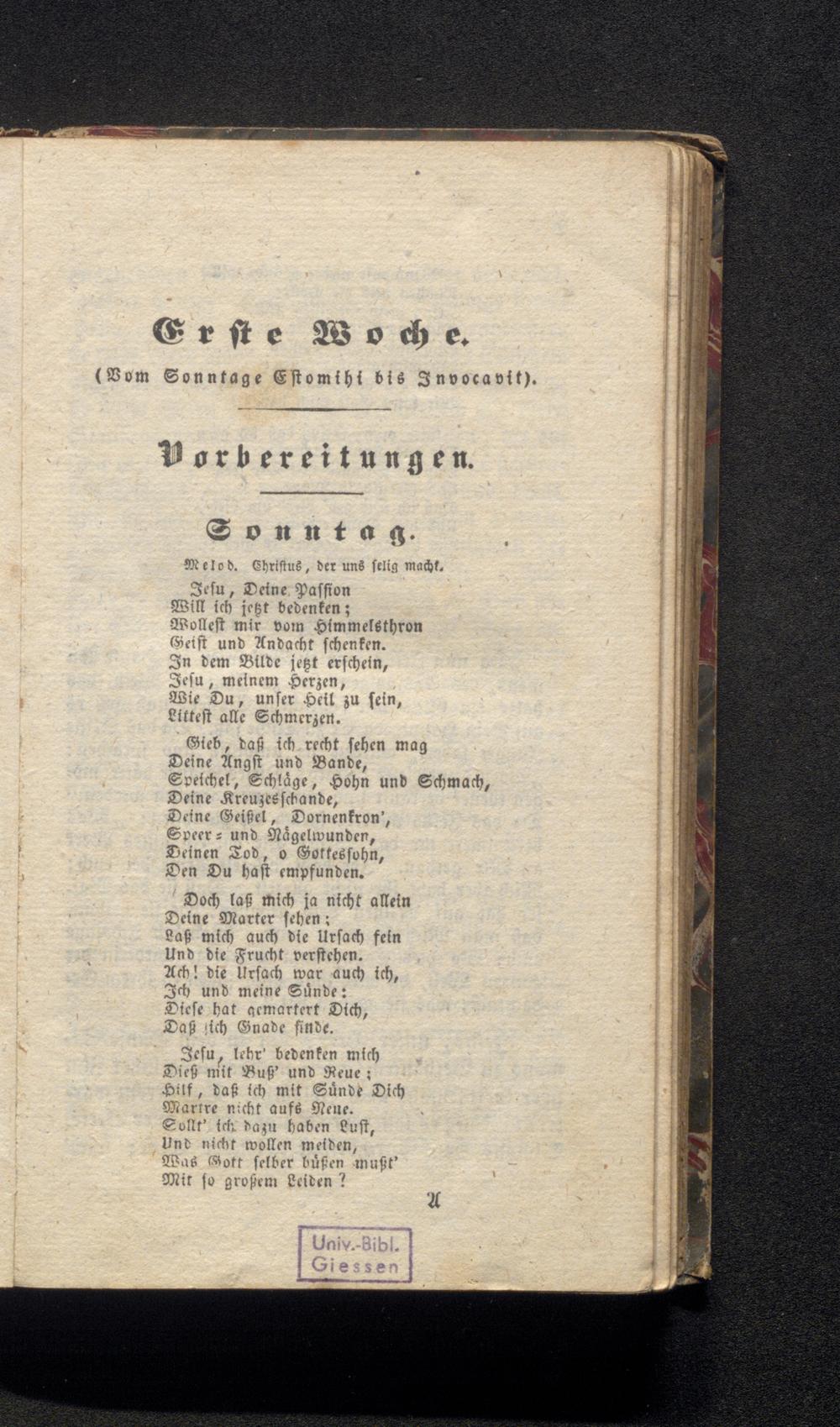 Jesu, lehr' bedenken mich Dieß mit Buß' und Reue; Hilf, daß ich mit Sünde Dich Martre nicht aufs Nene. Collt' ich dazu haben Lust, Und nicht wollen meiden, Was Gott selber büßen mußt' Mit so großem Leiden?