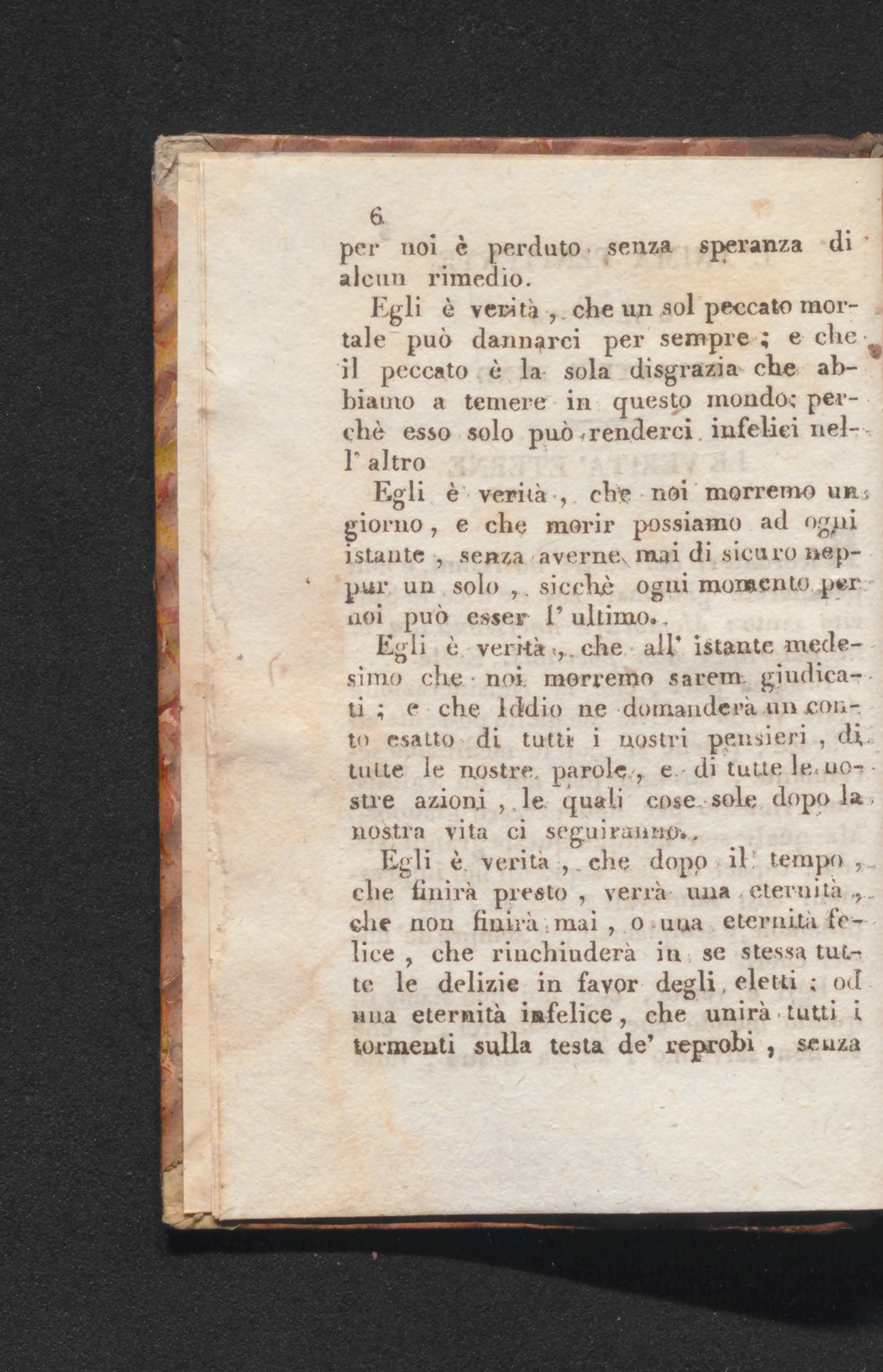 Egli è verità, che noi morremo un giorno, e che morir possiamo ad ogni senza averne, mai di sicuro neppur un solo, sicchè ogni momento per noi può esser l'ultimo..