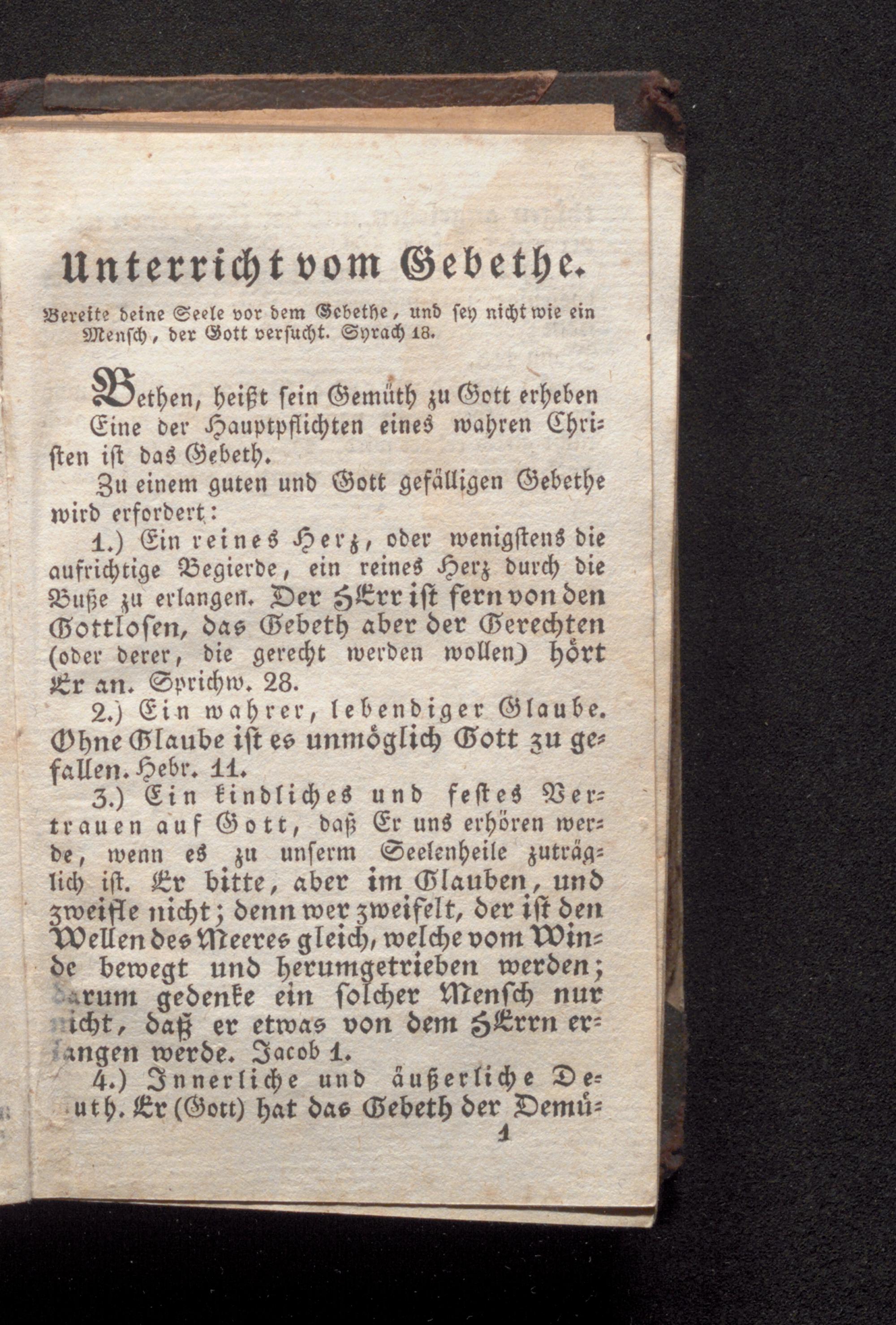 1.) Ein reines Herz, oder wenigstens die aufrichtige Begierde, ein reines Herz durch die Buße zu erlangen. Der 5Err ist fern von den Gottlosen, das Gebeth aber der Gerechten ( oder derer, die gerecht werden wollen) hört Er an. Sprichw. 28.