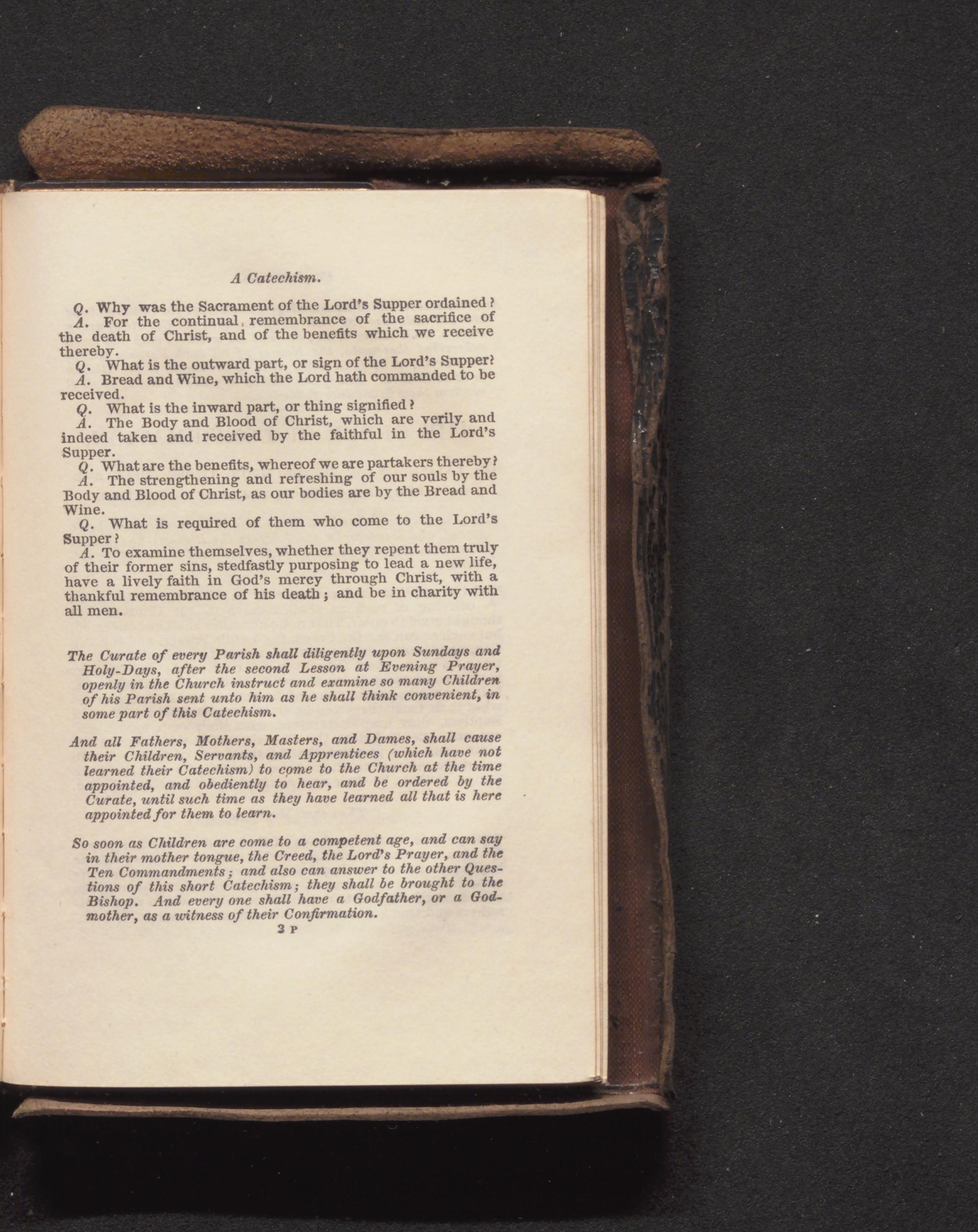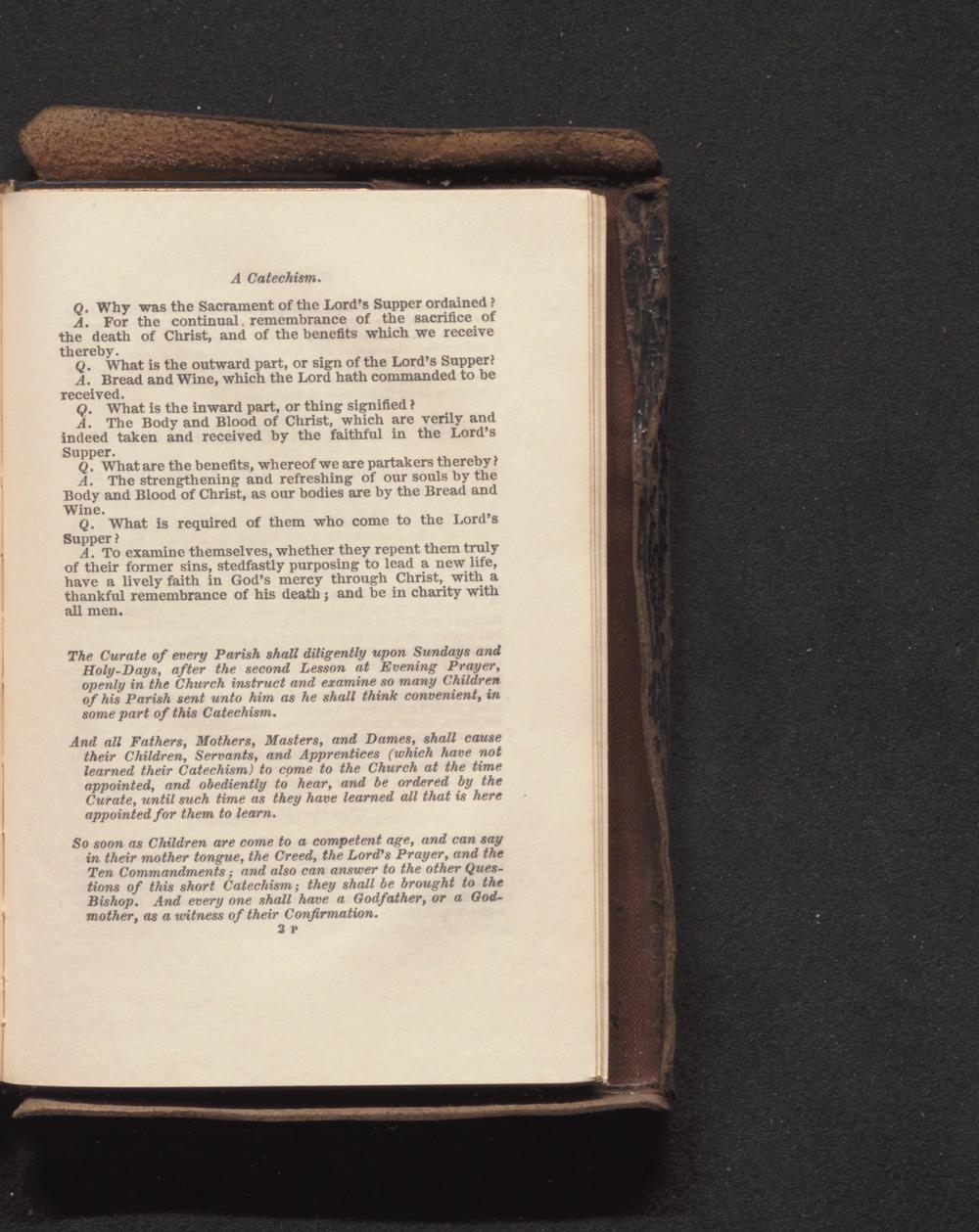 The Curate of every Parish shall diligently upon Sundays and Holy- Days, after the second Lesson at Evening Prayer, openly in the Church instruct and examine so many Children of his Parish sent unto him as he shall think convenient, in some part of this Catechism.