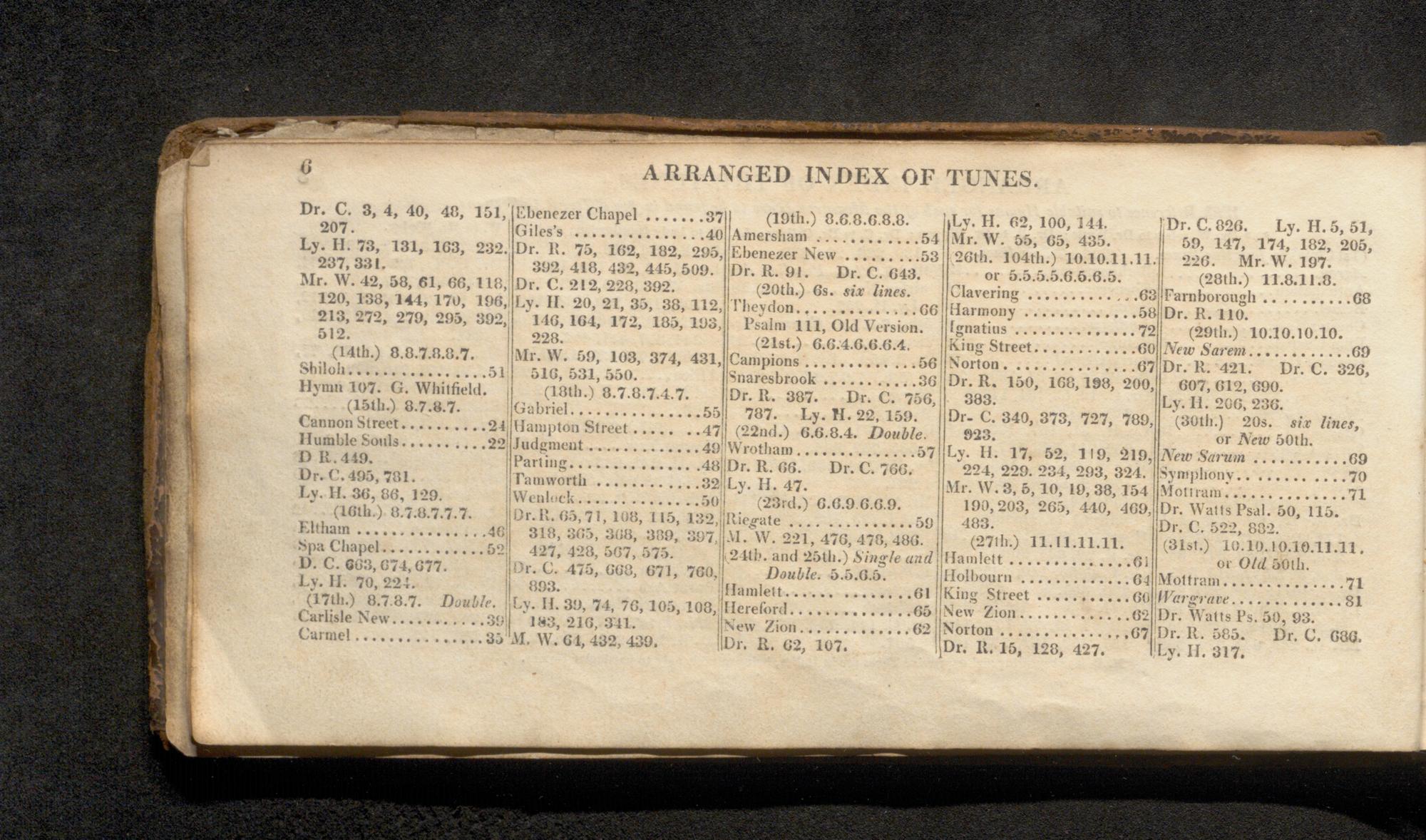 Ly. H. 62, 100, 144. .40 Amersham Mr. W. 55, 65, 435. Ebenezer New 26th. 104th.) 10.10.11.11. Dr. R. 91. Dr. C. 643. or 5.5.5.5.6.5.6.5. ( 20th.) 6s. six lines. Theydon.... Clavering ..66| Harmony Psalm 111, Old Version. Ignatius ( 21st.) 6.6.4.6.6.6.4. King Street. Campions. Norton. Snaresbrook..... Dr. R. 150, 168, 198, 383.
