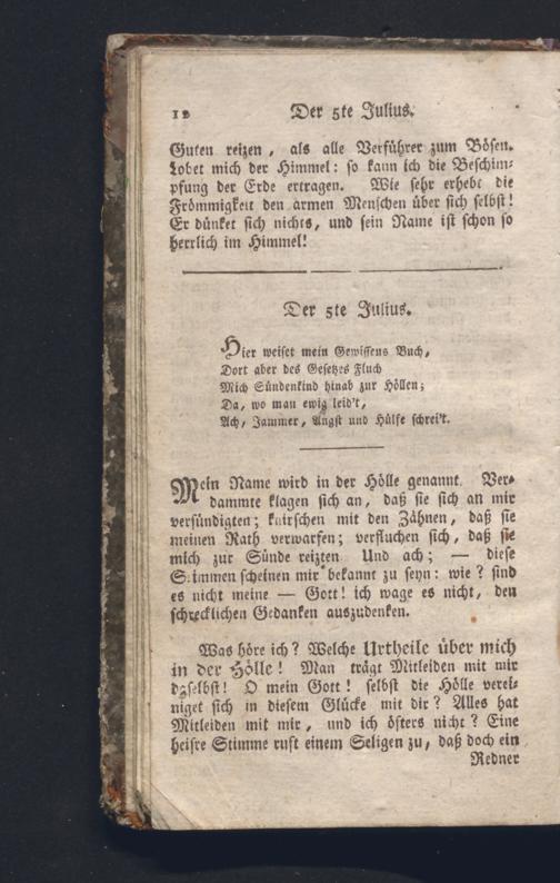 Mein Dein Name wird in der Hölle genannt. Vers dammte klagen sich an, daß sie sich an mir verfündigten; Fairschen mit den Zähnen, daß sie meinen Rath verwarfen; verfluchen sich, daß sie mich zur Sünde reizten. Und ach;- diese Gimmen scheinen mir bekannt zu seyn: wie? sind es nicht meine Gott! ich wage es nicht, den schrecklichen Gedanken auszudenken.