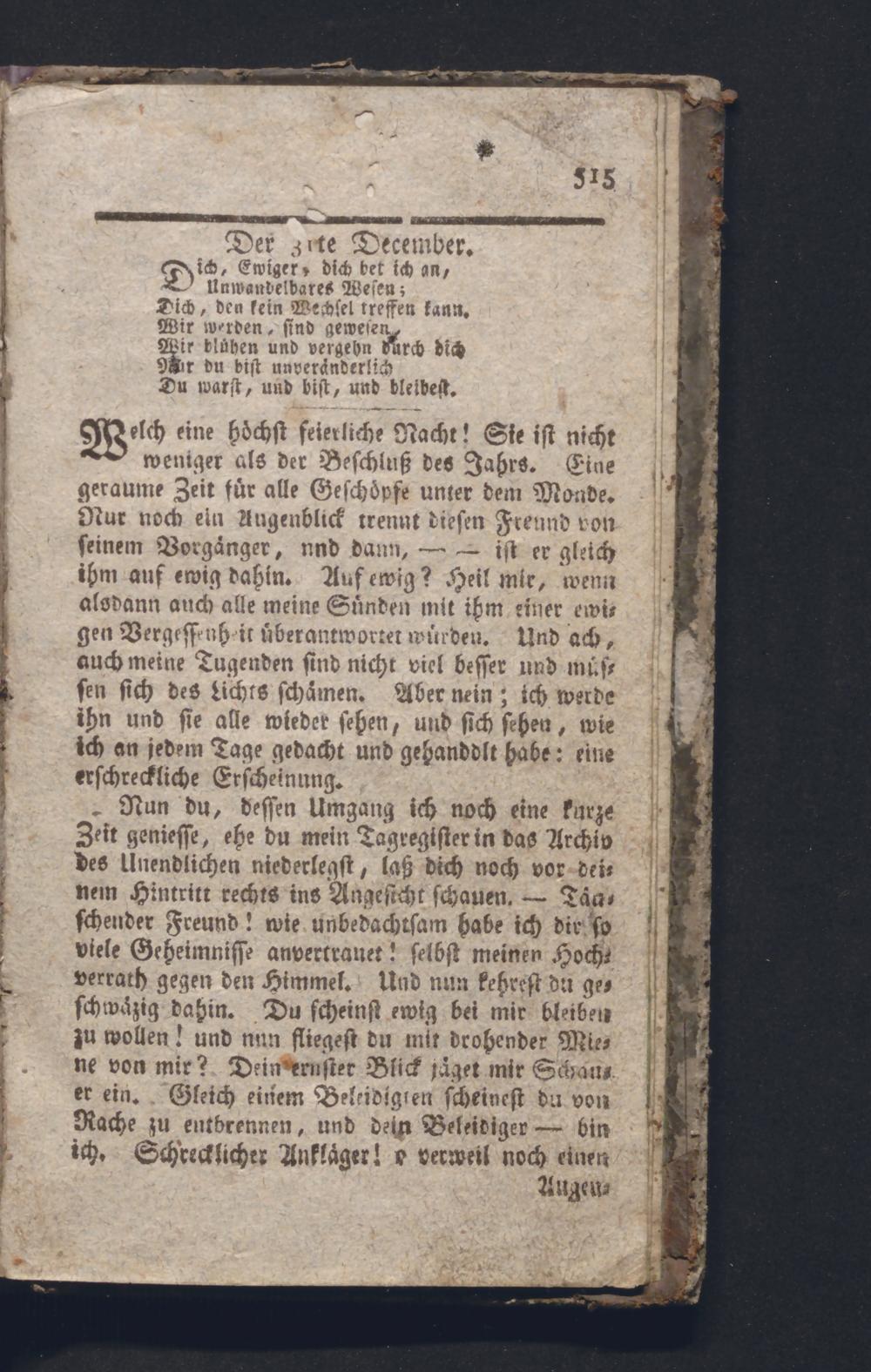 Der 3rte December. ich, Ewiger, dich bet ich an, Unwandelbares Wesen;