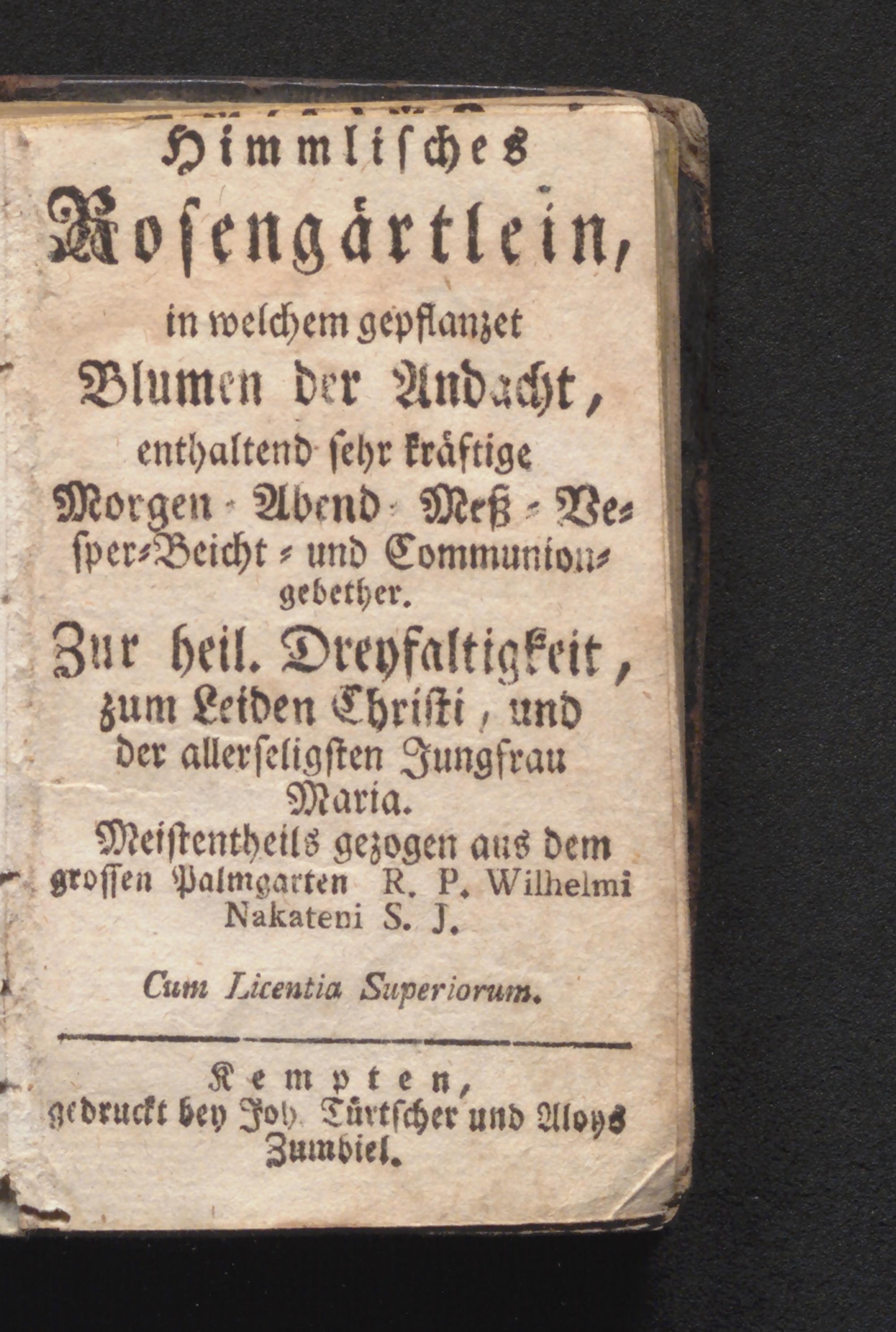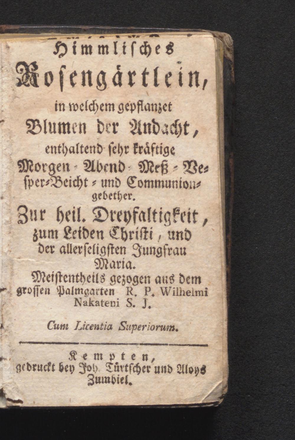 Kempten, gedruckt bey Joy Türtscher und Aloys Zumbiel.