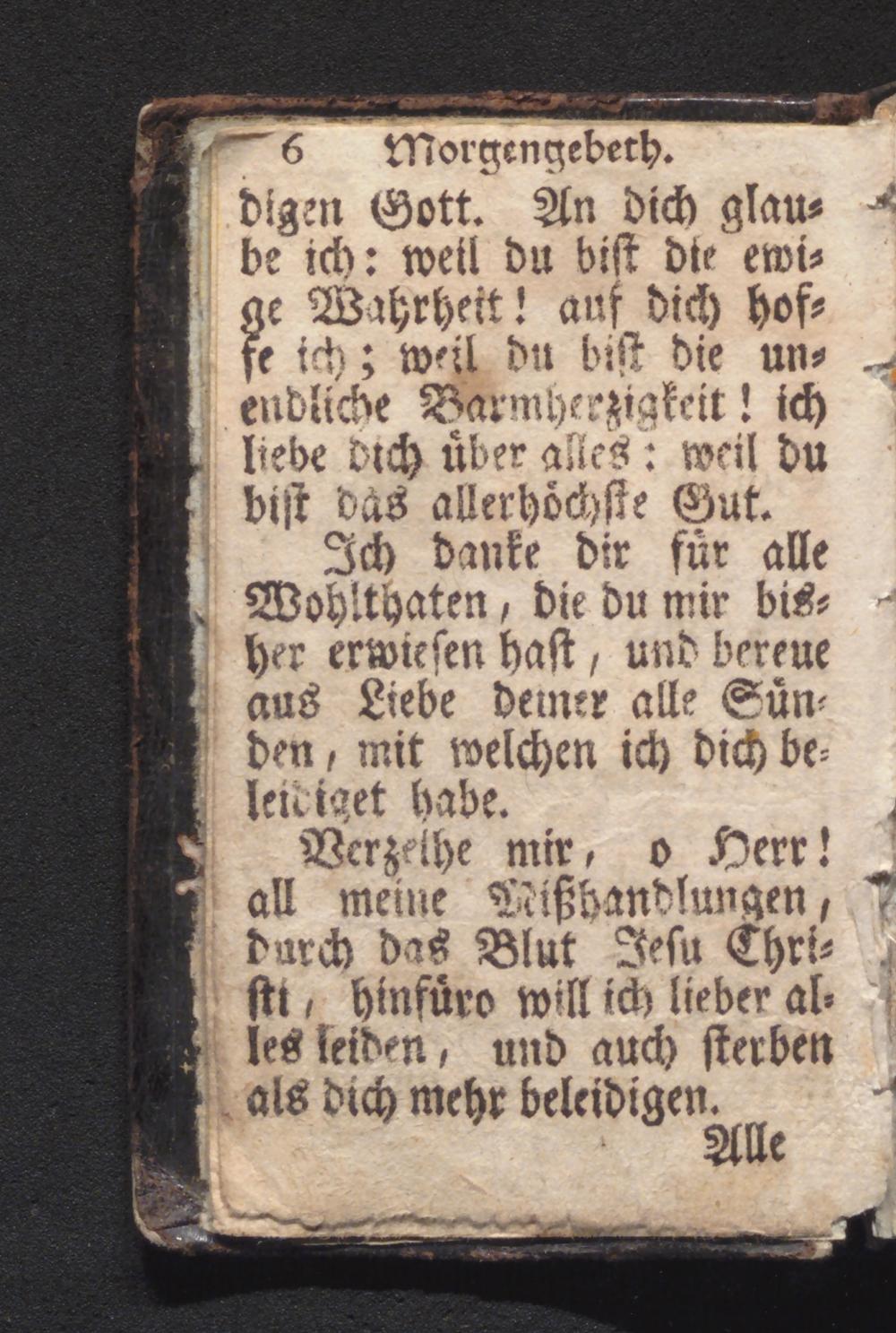6 Morgengebeth. digen Gott. An dich glaus be ich: weil du bist die emis ge Wahrheit! auf dich hofe fe ich; weil du bist die uns endliche Barmherzigkeit! ich liebe dich über alles: weil du bist das allerhöchste Gut.