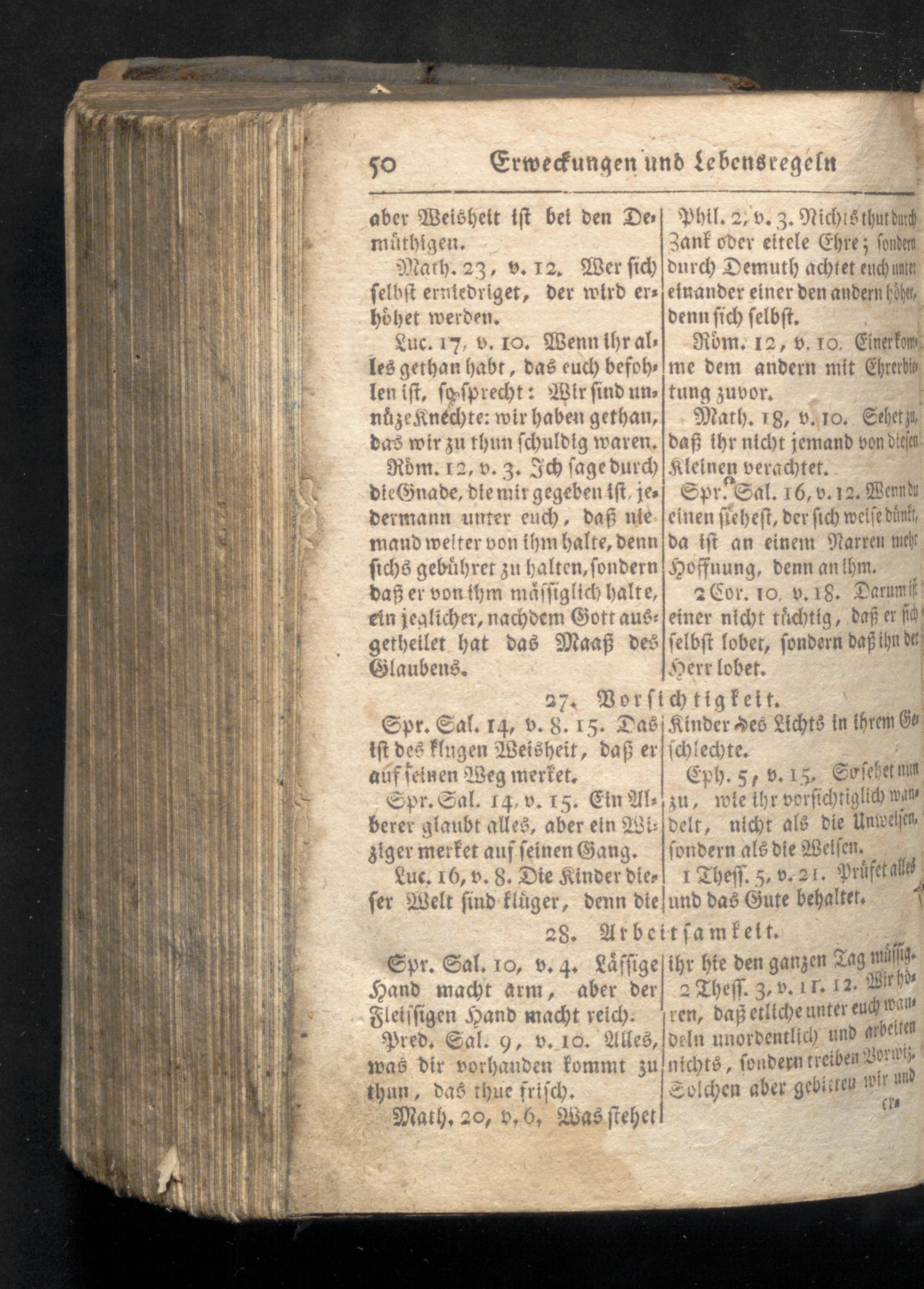Eph. 5, v. 15. Sofehet nun Spr. Sal. 14, v. 15. Ein Als zu, wie ihr vorsichtiglich wan berer glaubt alles, aber ein 28i: delt, nicht als die Unweisen, ziger merket auf seinen Gang. sondern als die Wetsen. Luc. 16, v. 8. Die Kinder dies 1 Theff. 5, v. 21. Prüfet alles fer Welt sind kluger, denn die und das Gute behaltet.
