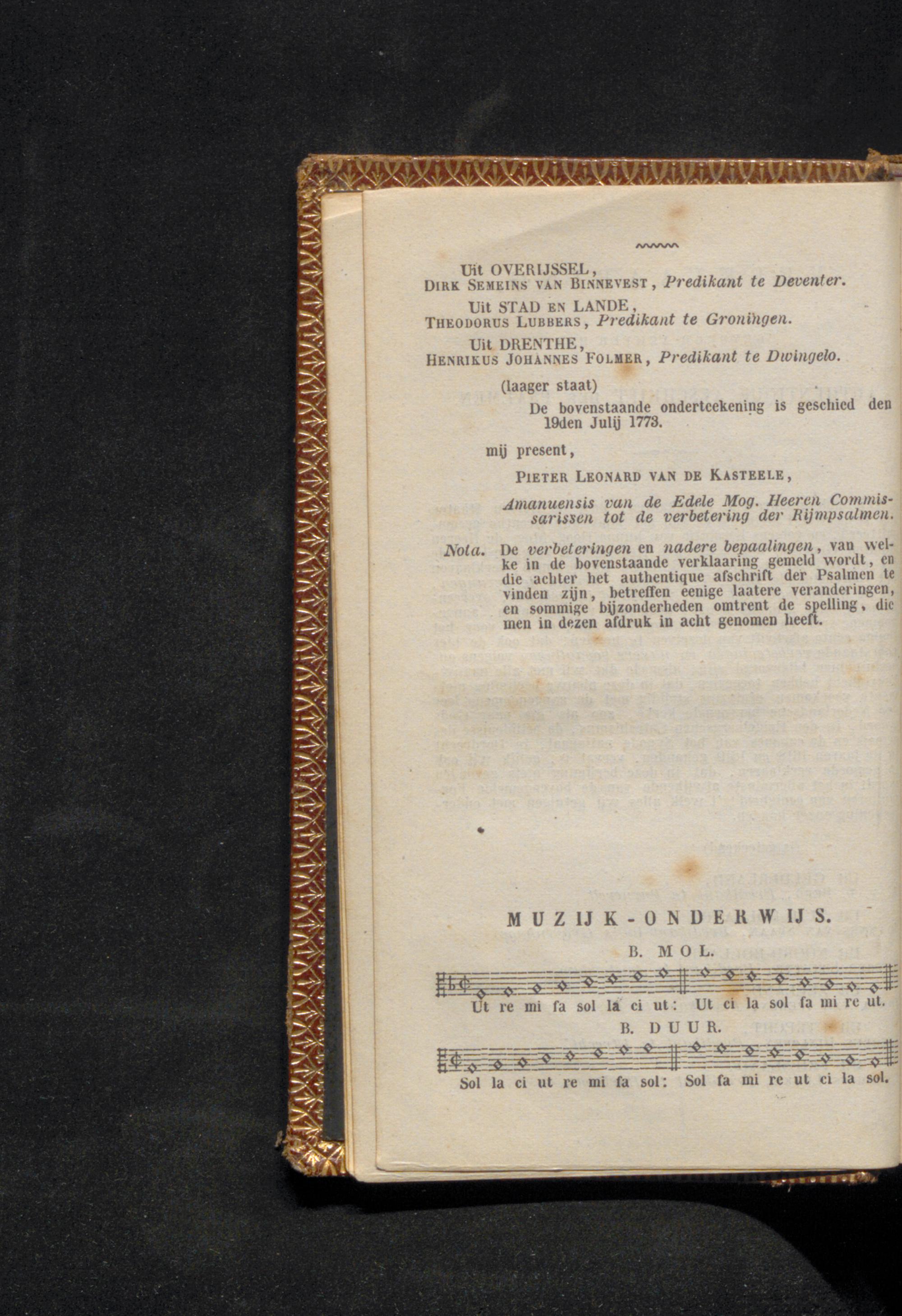 Nota. De verbeteringen en nadere bepaalingen, van welke in de bovenstaande verklaaring gemeld wordt, en die achter het authentique afschrift der Psalmen te vinden zijn, betreffen eenige laatere veranderingen, en sommige bijzonderheden omtrent de spelling, die men in dezen afdruk in acht genomen heeft.