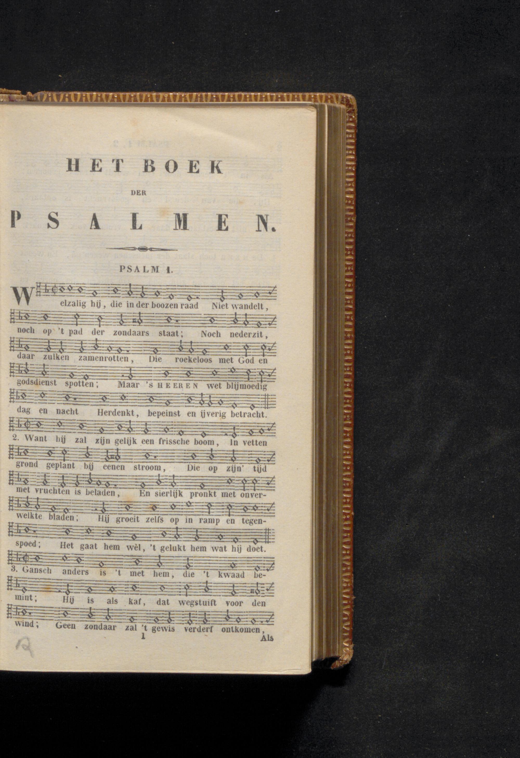 noch op' t pad der zondaars staat; Noch nederzit, daar zulken zamenrotten, Die roekeloos met God en godsdienst spotten; Maar' s HE ER EN wet blijmoedig dag en nacht Herdenkt, bepeinst en ijverig betracht.