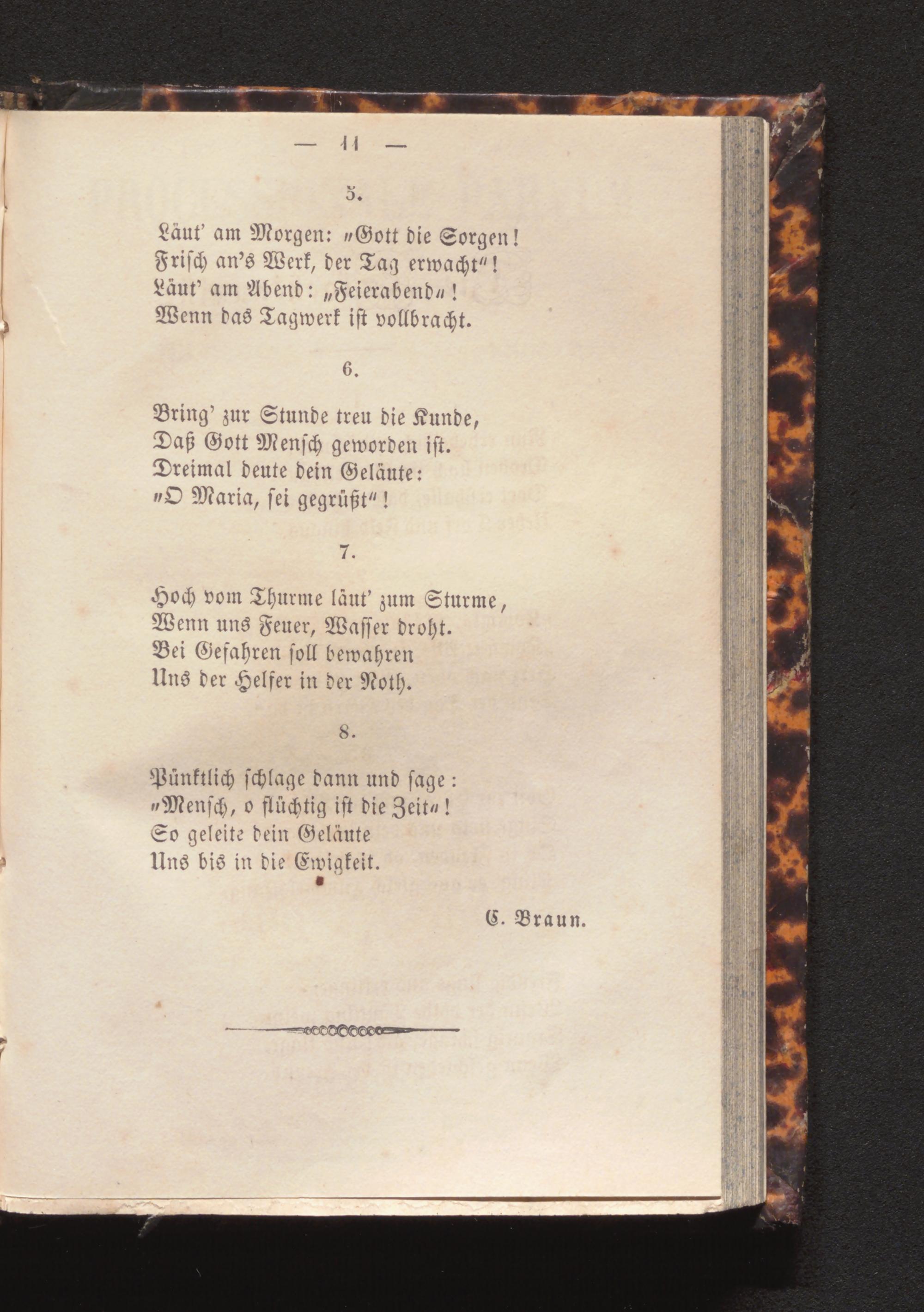 Pünktlich schlage dann und sage: " Mensch, o flüchtig ist die Zeita! So geleite dein Geläute Uns bis in die Ewigkeit.