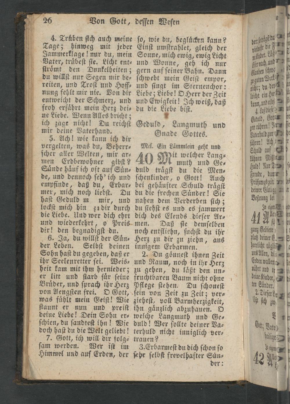 5. Ach! wie kann ich dir vergelten, was du, Beherr⸗ ſcher aller Welten, mir ar⸗ men Erdbewohner gibſt? Suͤnde haͤuf ich oft auf Suͤn⸗ de, und dennoch ſeh' ich und empfinde, daß du, Erbar⸗ mer, mich noch liebſt. Du haſt Geduldm mir, und lockſt mich hin zadir durch die Liebe. Und wer dich ehrt und wiederkehrt, o Preis dir! den begnadigſt du.