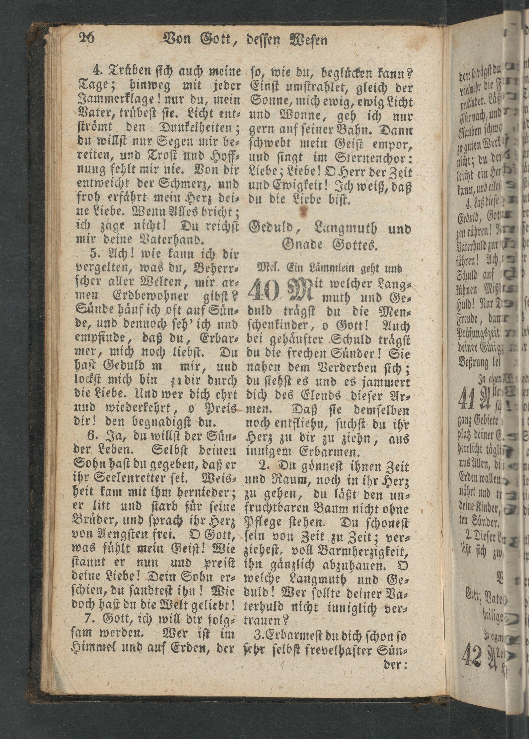 2. Du goöoͤnneſt ihnen Zeit und Raum, noch in ihr Herz zu gehen, du laͤßt den un⸗ fruchtbaren Baum nicht ohne Pflege ſtehen. Du ſchoneſt ſein von Zeit zu Zeit; ver⸗ zieheſt, voll Barmherzigkeit, ihn gaͤnzlich abzuhauen. O welche Langmuth und Ge⸗ duld! Wer ſollte deiner Va⸗ terhuld nicht inniglich ver⸗ trauen?