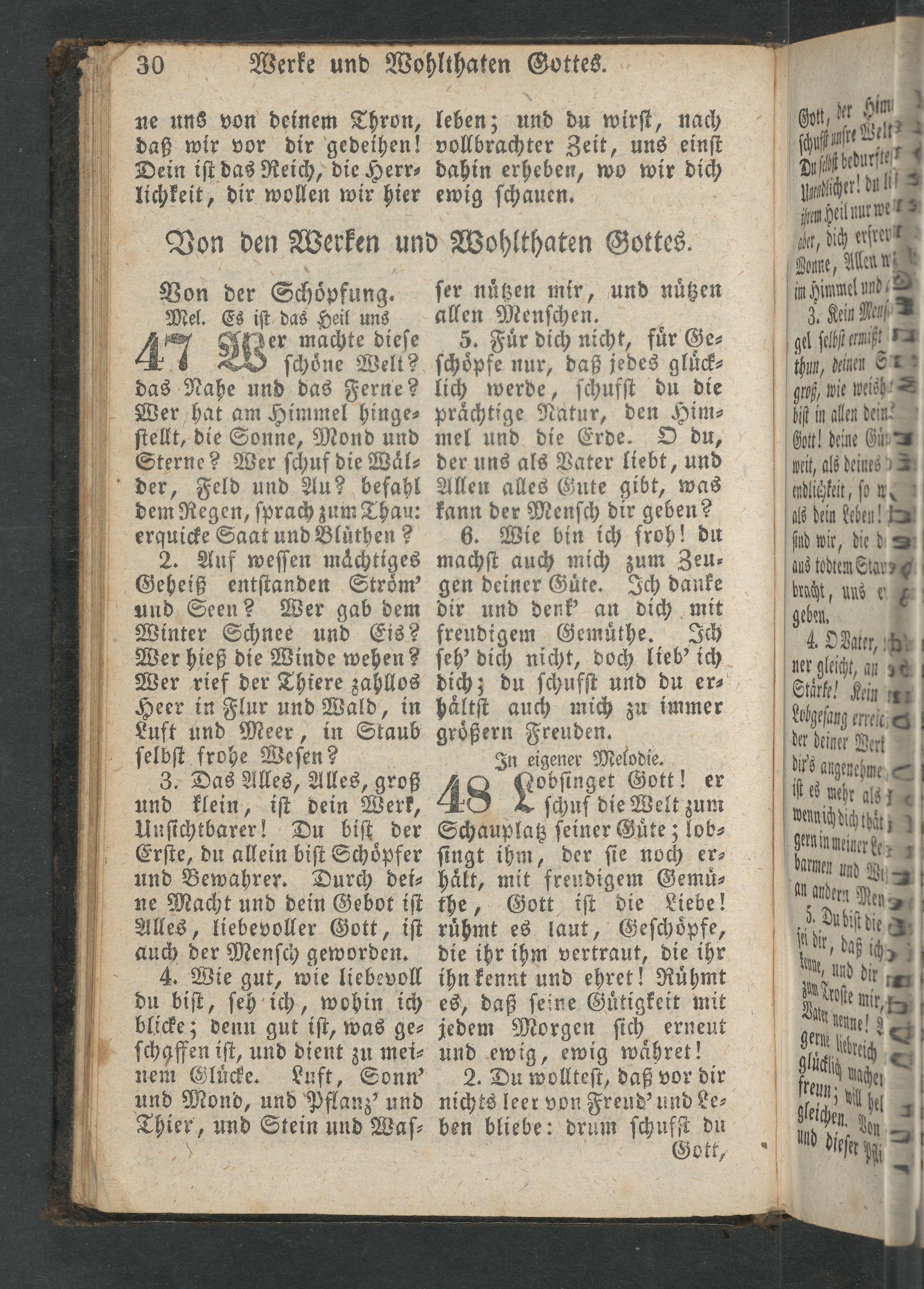 3. Das Alles, Alles, groß und klein, iſt dein Werk, Unſichtbarer! Du biſt der Erſte, du allein biſt Schoͤpfer und Bewahrer. Durch dei⸗ ne Macht und dein Gebot iſt Alles, liebevoller Gott, iſt auch der Menſch geworden.