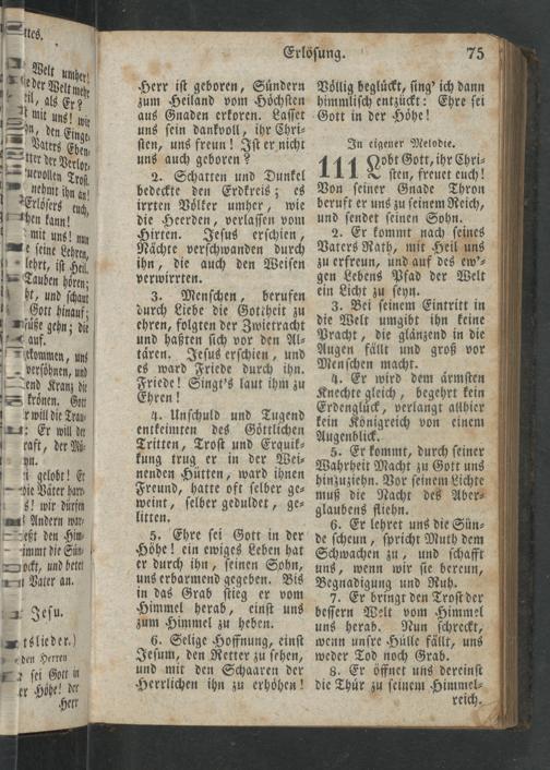 Herr iſt geboren, Suͤndern zum Heiland vom Hoͤchſten aus Gnaden erkoren. Laſſet uns ſein dankvoll, ihr Chri⸗ ſten, uns freun! uns auch gebyren 2. Schatten und Dunkel bedeckte den Erdkreis; es