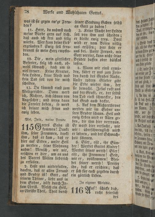 6. Eilet, eilt, ihr Sün⸗ der! Werdet Gottes Kinder! Werdet ſeiner werth! Eilet! eilt, ihr Frommen! Seid, wie er, vollkommen! Blei⸗ bet ſeiner werth! Preiſet ihn, daß er erſchien; daß er ſich für euch gegeben durch ein göttlich Leben.