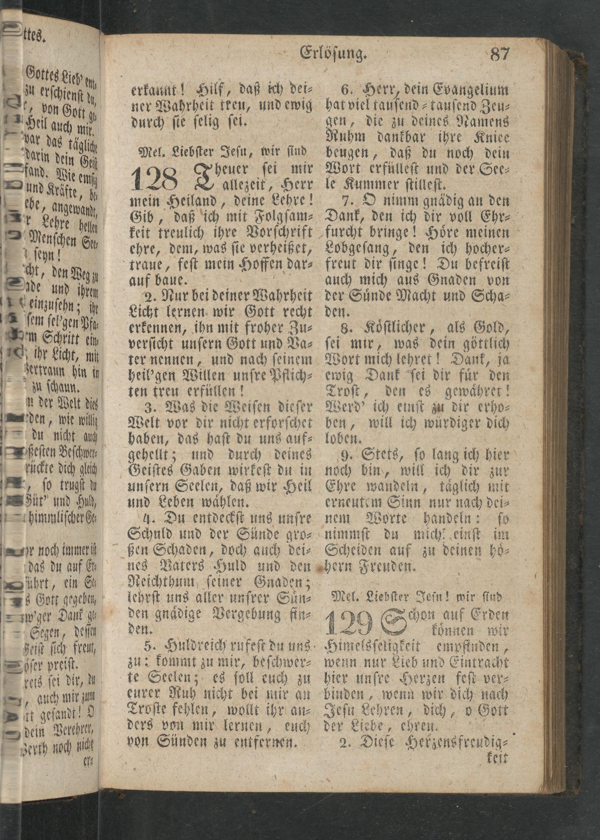 128 T allezeit, Herr 12 Heiland, deine Lehre! Gib, daß ich mit Folgſam⸗ keit treulich ihre Vorſchrift ehre, dem, was ſie verheißet, traue, feſt mein Hoffen dar⸗ auf baue.