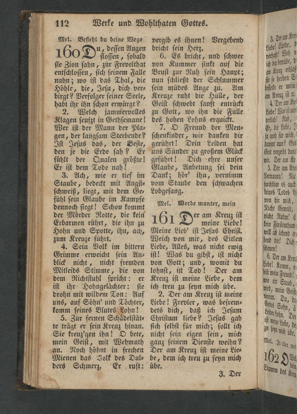 er am Kreuz iſt 161 D meine Libbe! Meine Lieb' iſt Jeſus Chriſt . Weich von mir, des Eitlen Liebe, Alles, was nicht ewig iſt! Was du gibſt, iſt nicht von Gott ; und, womit du lohnſt, iſt Tod! Der am Kreuz iſt meine Liebe, dem ich tren zu ſeyn mich uübe. 2. Der am Kreuz iſt meine Liebe! Frevler, was befrem⸗ dets dich, daß ich Jeſum Chriſtum liebe? Jeſus gab ſich ſelbſt fur mich; ſollt ich nicht ſein eigen ſein, mich ganz ſeinem Dienſte weihn? Der am Kreuz iſt meine Lie⸗ be, dem ich treu zu ſeyn mich