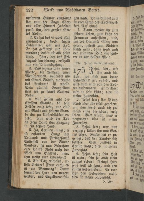 3. Jeſus lebt; wer nun verzagt; läſtert ihn und Got⸗ tes Ehre. Gnade hat er zu⸗ geſagt, daß der Suünder ſich bekehre. Gott verſtößt in Chriſto nicht; dies iſt meine Zuverſicht.
