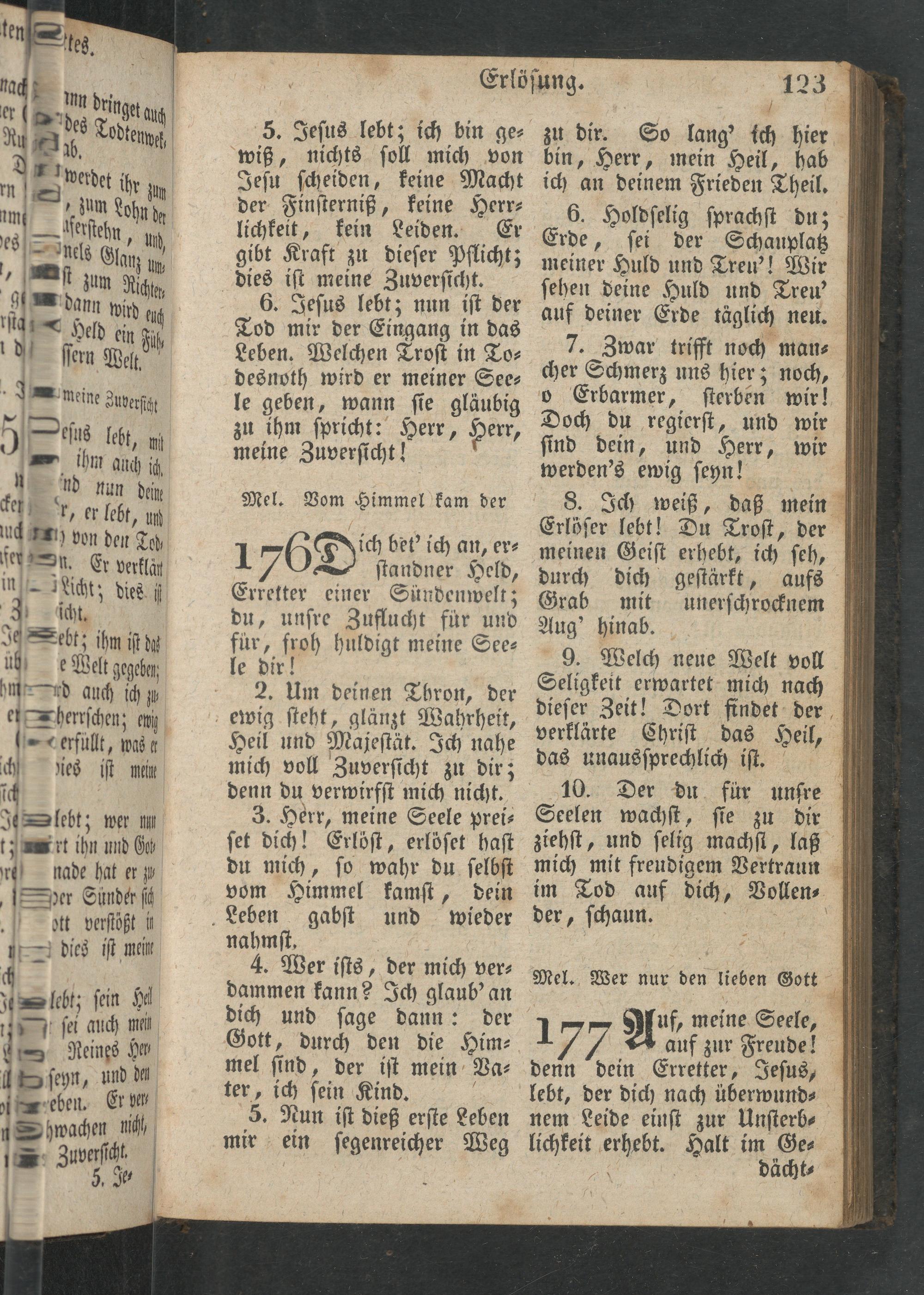 8. Ich weiß, daß mein Erlöſer lebt! Du Troſt, der meinen Geiſt erhebt, ich ſeh, durch dich geſtärkt, aufs Grab mit unerſchrocknem Aug' hinab.