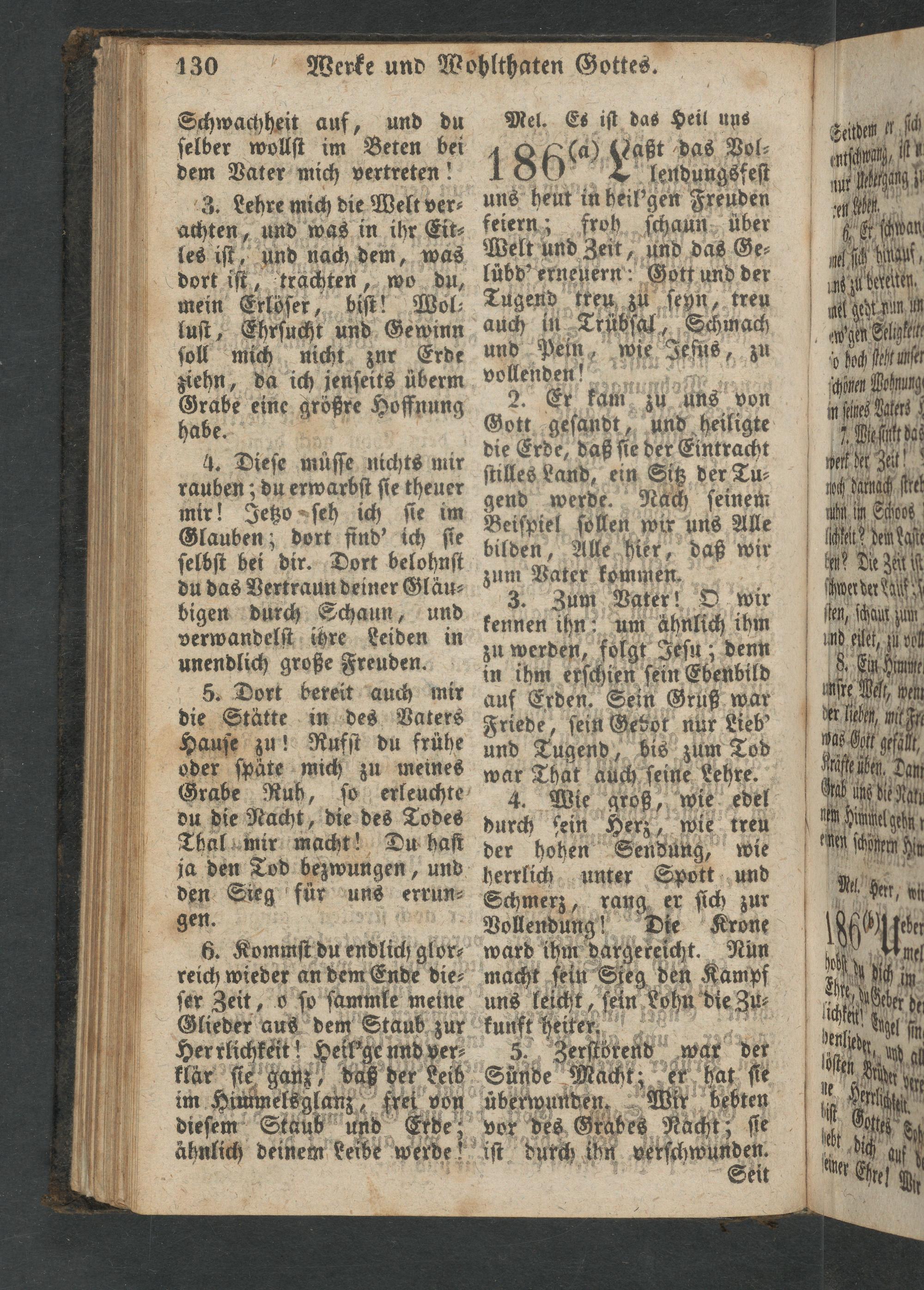 3. Zum Vater! O wir kennen ihn: um üünnch ihm zu werden, folgt Jeſu; denn in ihm erſchien ſein Ebenbild auf Erden. Sein Gruß war Friede, ſein Gevot nur Lieb' und Tugend, bis zum Tod war That auch ſeine Lehre.