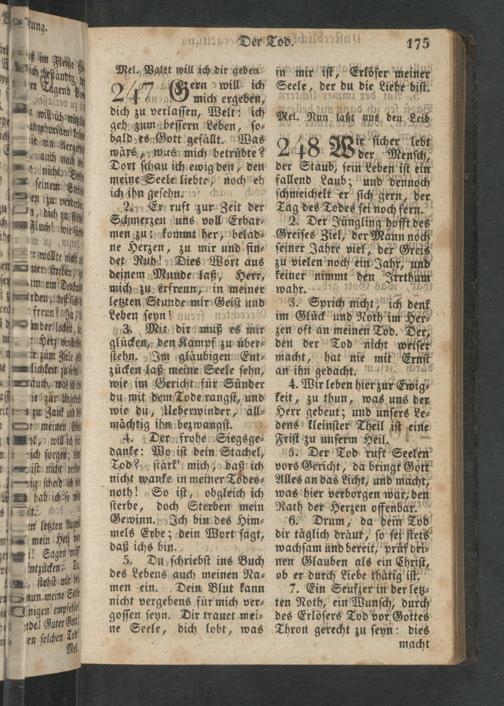 Tod?, ſtärk' mich, daß ich nicht wanke in meiner Toͤdes⸗ noth!„So iſt, obgleich ich ſterbe, doch Sterben mein Gewinn. Ich bin des Him⸗ mels Erbe; dein Wort ſagt, daß ichs bin.