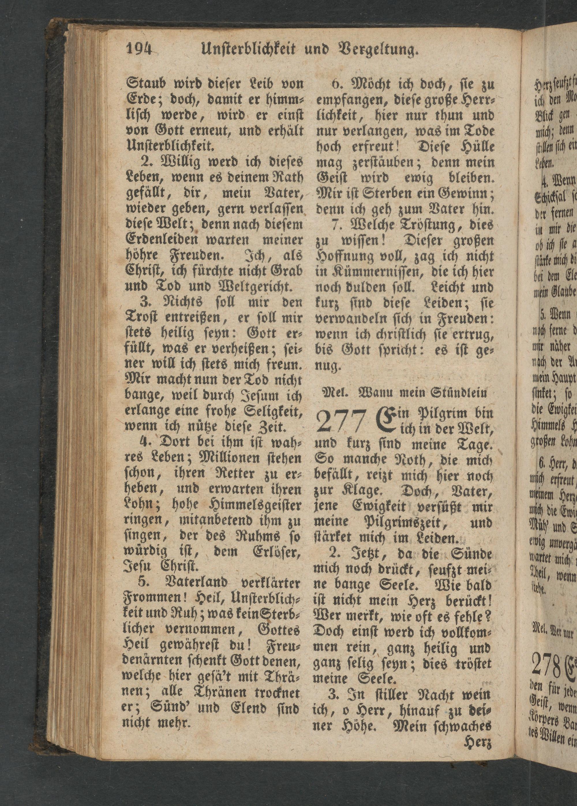 — in Pilgrim bin 277 Ei 8 dr Welt, und kurz ſind meine Tage. So manche Noth, die mich befällt, reizt mich hier noch zur Klage. Doch, Vater, jene Ewigkeit verſüßt mir meine Pilgrimszeit, und ſtärket mich im Leiden.
