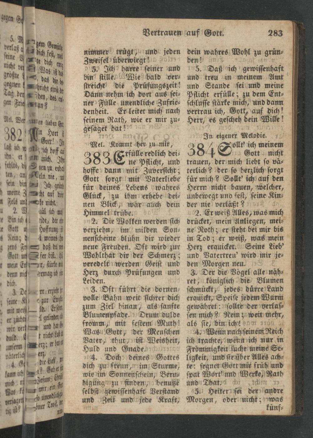 4. Doch deines Gottes dich zu freun, im Sturme, wie im Sonnenſchein, Beru⸗ higungmzu finden, benutzt ſelbſt gewiſſenhaft Verſtand und Zeit und jede Kraft,