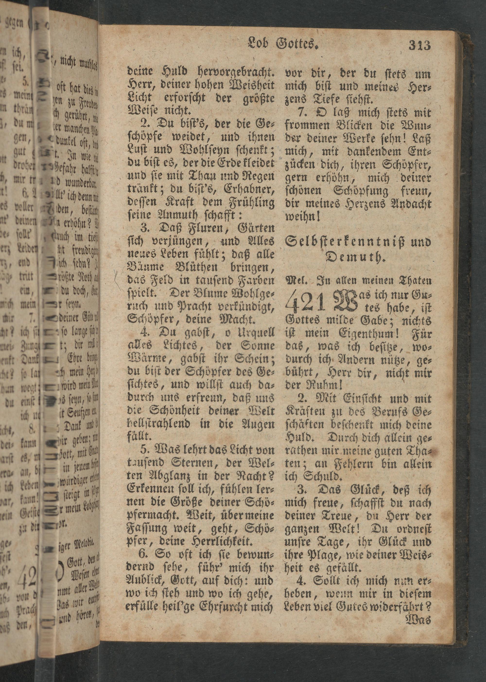 h, 21 Was ich nur Gu⸗ 4 tes habe, iſt Gottes milde Gabe; nichts iſt mein Eigenthum! Fuͤr das, was ich beſitze, wo⸗ durch ich Andern nütze, ge⸗ bührt, Herr dir, nicht mir der Ruhm!