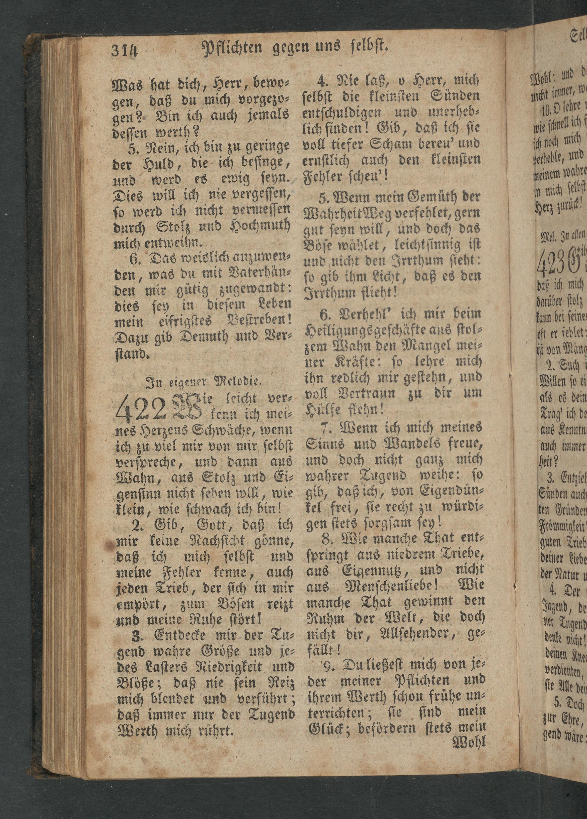 2. Gib, Gott, daß ich mir keine Nachſicht gönne, daß ich mich ſelbſt und meine Fehler kenne, auch jeden Trieb, der ſich in mir