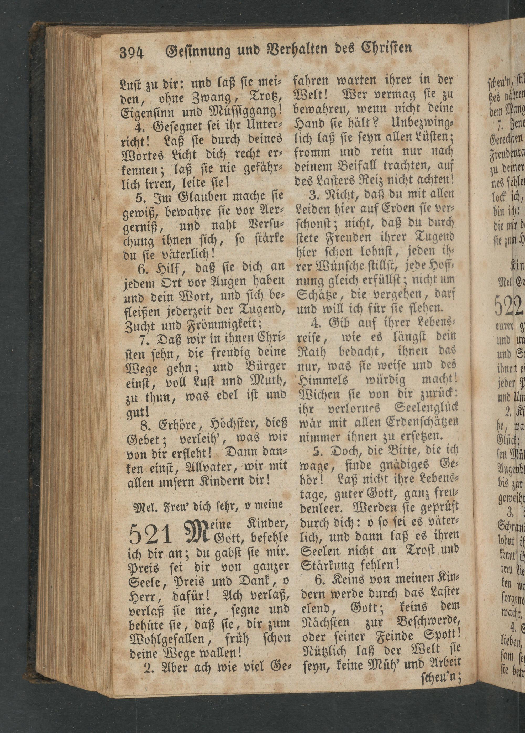 52 1 Meine Kinder, 4 Gott, befehle ich dir an; du gabſt ſie mir. Preis ſei dir von ganzer Seele, Preis und Dank, o Herr, dafür! Ach verlaß, verlaß ſie nie, ſegne und behüte ſie, daß ſie, dir zum Wohlgefallen, früh ſchon deine Wege wallen!
