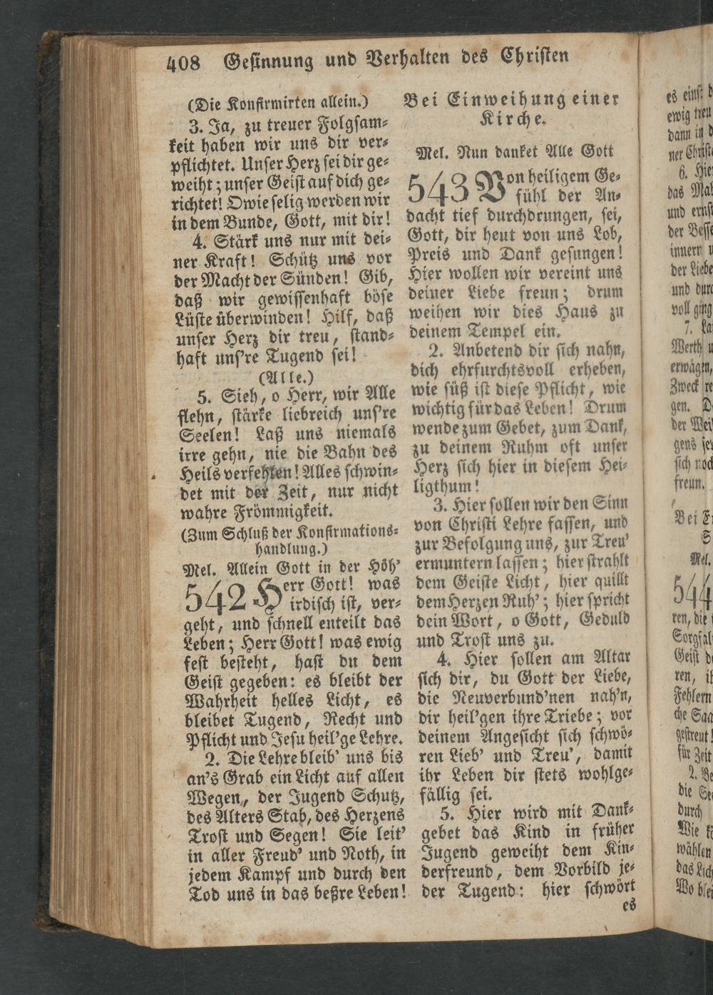on heiligem Ge⸗ 543 V fühl der An⸗ dacht tief durchdrungen, ſei, Gott, dir heut von uns Lob, Preis und Dank geſungen! Hier wollen wir vereint uns deiner Liebe freun; drum weihen wir dies Haus zu deinem Tempel ein.