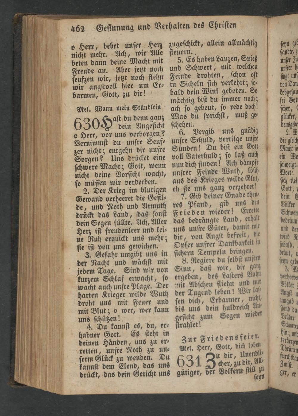 3. Gefahr umgibt uns in ſichern Tempeln bringen. der Nacht und wächſt mit 8. Regiere du ſelbſt unſern jedem Tage. Sind wir von Sinn, daß wir, dir ganz kurzem Schlaf erwacht, ſo ergeben, des Laſters Bahn wacht auch unſre Plage. Der nit Abſcheu fliehn und nur harten Krieger wilde Wuth droht uns mit Feuer und mit Blut; o wer, wer kann uns ſchützen!