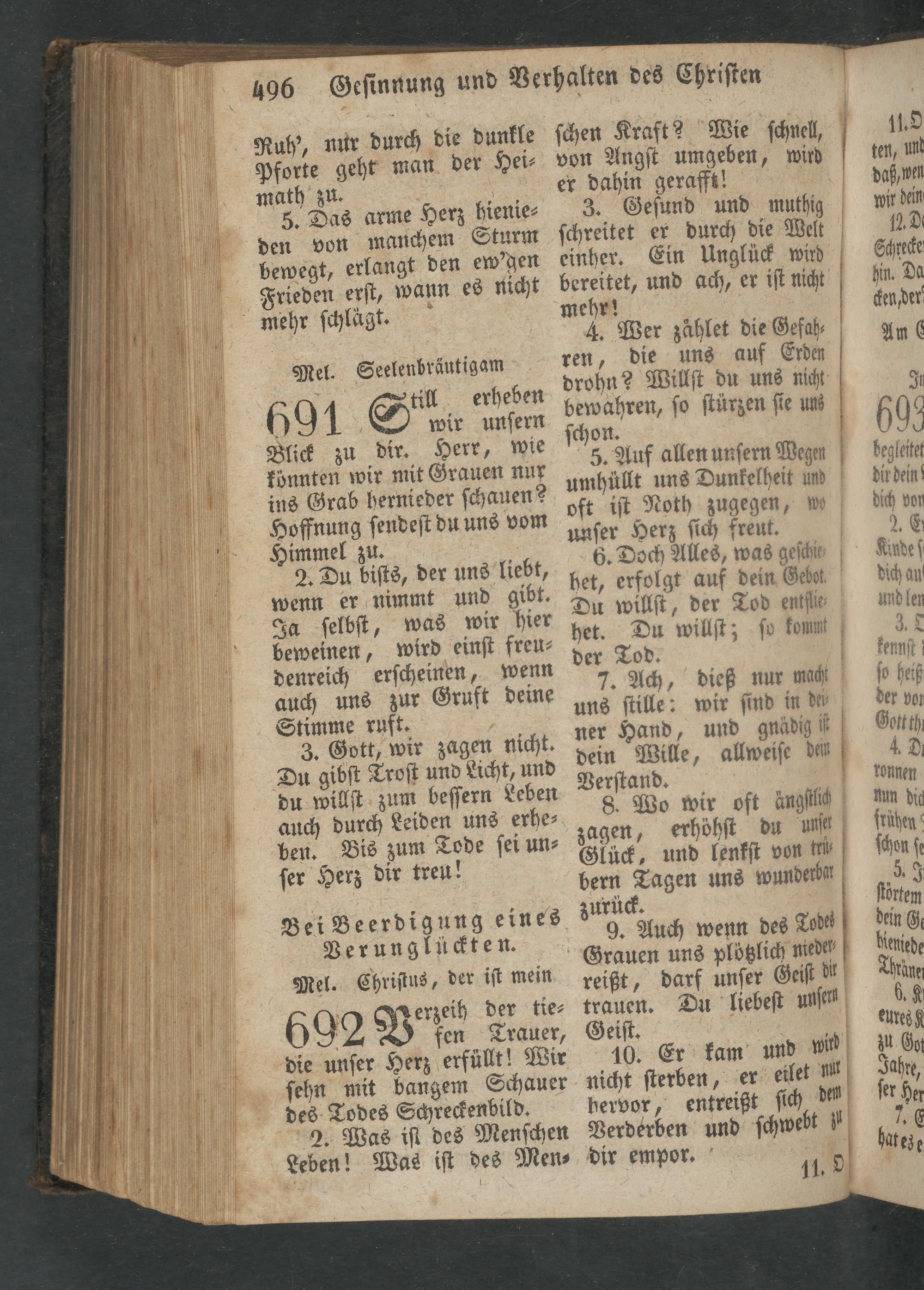 till erheben 691 S wir unſern Blick zu dir. Herr, wie 05 Auf al r nif b könnten wir mit Grauen nux 5. Auf allen unſern Wegen ins Grab hernieder ſchauen? umhüllt uns Dunkelheit und Hoffnung ſendeſt du uns vom oft iſt Noth zugegen, wo Himmel zu. unſer Herz ſich frau5t. 2. Du biſts, der uns liebt, heß Doh las was ppſch b wenn er nimmt und gibt. Du willſt dein Gebol⸗ 1 4 Du willſt, der Tod entſlie⸗