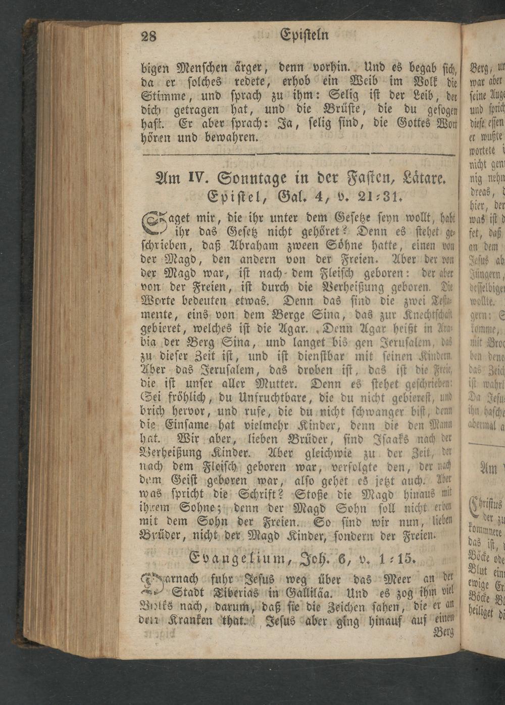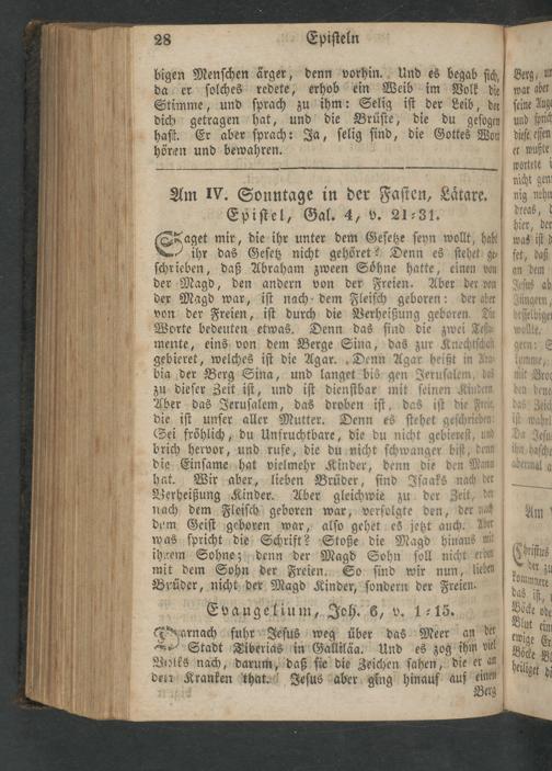 Am IV. Sonntage in der Faſten, Laͤtare. Epiſtel, Gal. 4, v. 21⸗31. V I