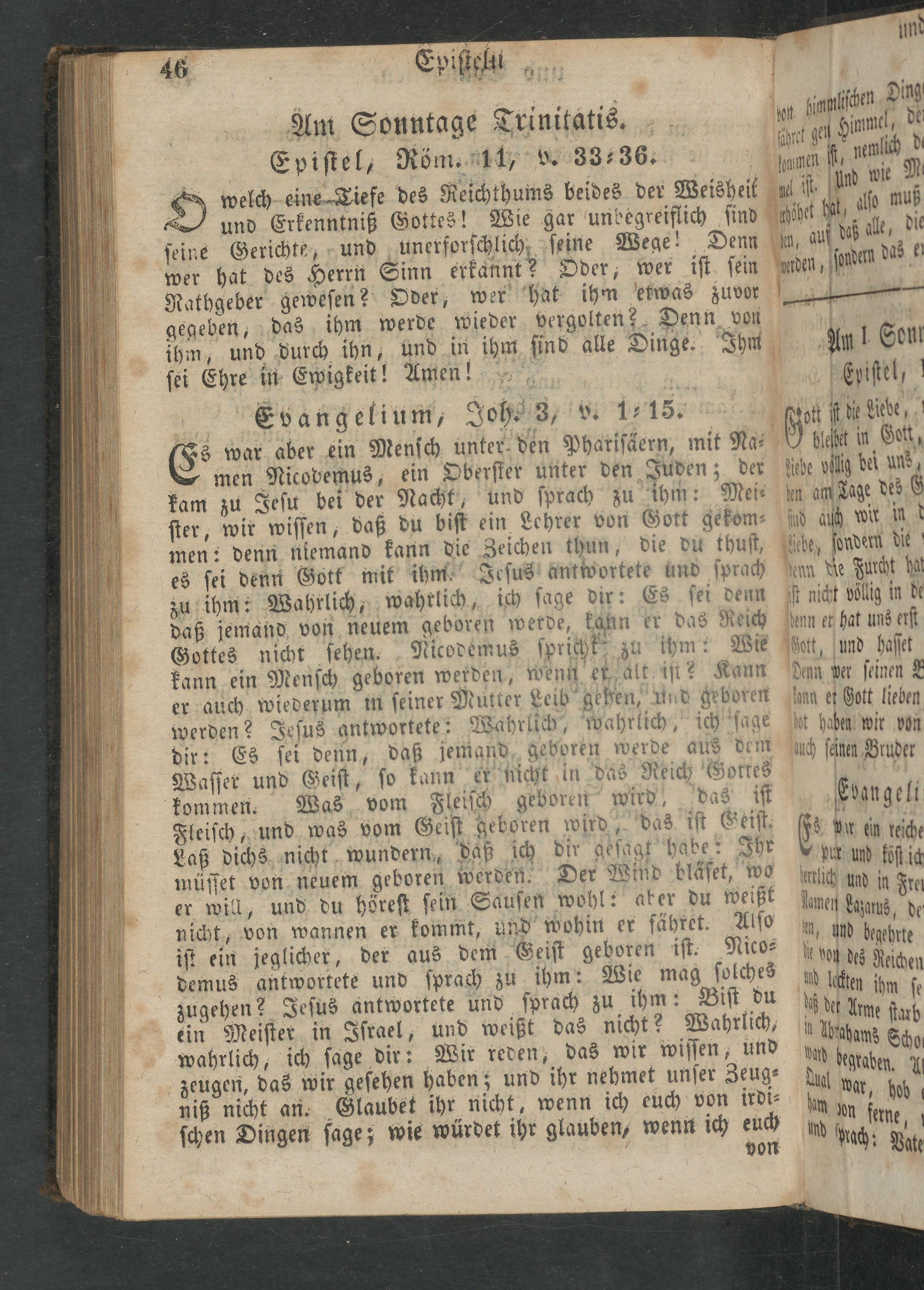 — das ihm werde wieder vergolten; Denn von ihm, und durch ihn, und in ihm ſind alle Dinge. Ihm ſei Ehre in Ewigkeit! Amen! 4 Evangelium, Joh. 3, v. 1:15.