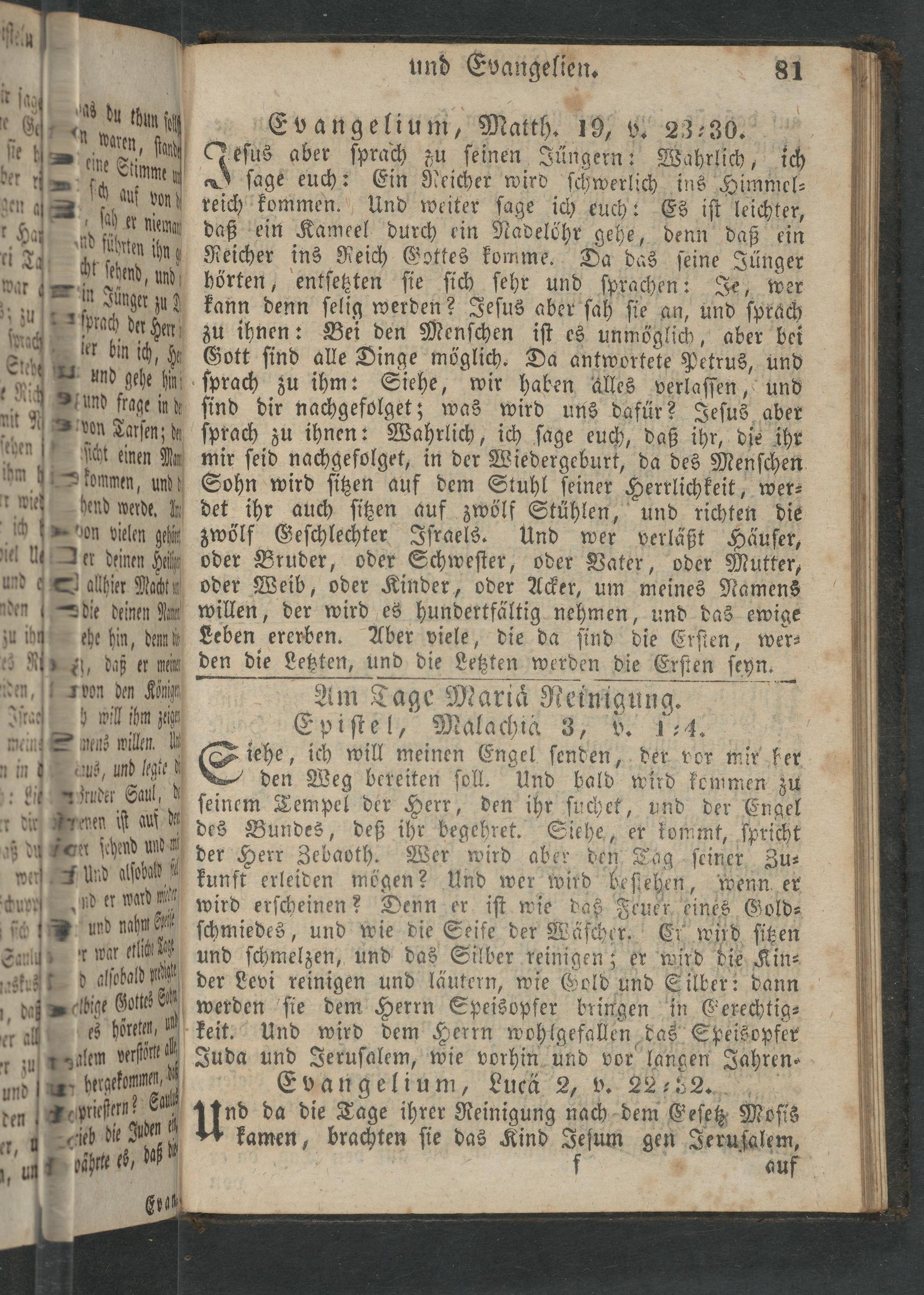 Evangelium, Lucä 2, v. 22 ⸗ 52. Ur“ da die Tage ihrer Reinigung nach dem Geſetz Moſis kamen, brachten ſie das Kind Jeſum gen Jeruſalem ,