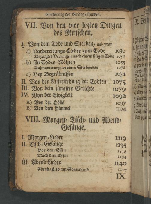 1 Morgen⸗„Lieder 1119 II Tiſch⸗Geſaͤnge 135 8 Vor dem Eſſen 1138 3 Aaach dem Eſſen 1133 4 m. Abend⸗ Lieder 1140 Abend⸗Lied am Sonnabend 8
