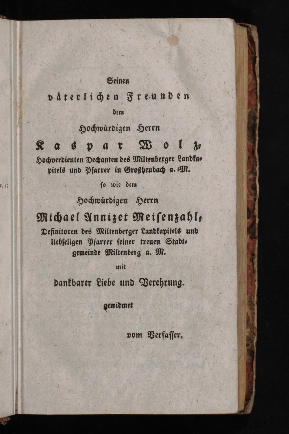 r. 1:. ſo wie dem Hochwuͤrdigen Herrn Michael Annizet Meiſenzahl, Definitoren des Miltenberger Landkapitels und