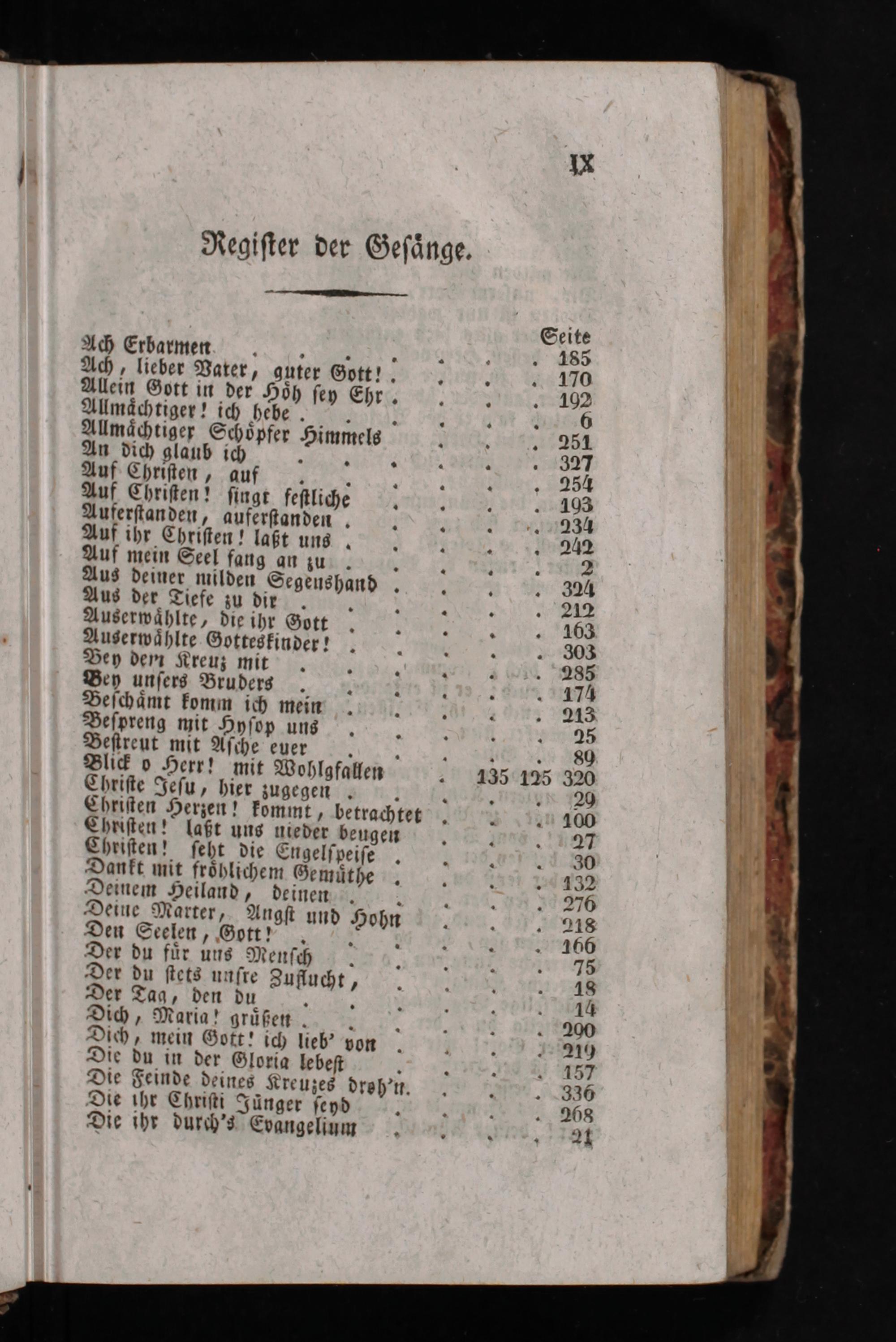 251 An dich glaub i Auf Chriſten, auf Auf Chriſten! ſingt feſliche. 3 Auferſtanden, auferſtanden Auf ihr Chriſten! laßt uns. S Auf mein Seel fang an zu. 3 2 Aus deiner milden Segenshand 3 Aus der Tiefe zu dir. Auserwählte, die ihr Gott 163 Auserwählte Gotteskinder!. Bey dem Kreuz mit... 285 Bey unſers Bruders 4 Beſchaͤmt komm ich mein Beſpreng mit Hyſop uns. 5 35 Beſtreut mit Aſche euer 1 80 Blick o Herr! mit Wohlgfallen 1435 125 320 Chriſte Jeſu, hier zugegen 1. 6 29 Chriſten Herzen! kommt, betrachtet 100 Chriſten! laßt uns nieder beugen 7 Chriſten! ſeht die Engelſpeiſe. 86 Dankt mit froͤhlichem Gemuͤthe„ 432 Deinem Heiland, deinen.. 32 Deine Marter, Angſt und Hohn 218 Den Seelen, Gott!. 2 1 166 Der du fuͤr uns Menſch. 5. Der du ſtets unſte Zuflucht,. 11½ Der Tag, den du ⸗ 16 Dich, Maria! gruͤßen. 200 Dich, mein Gott! ich lieb⸗ von. 219 Die du in der Gloria lebeſt 57 Die Feinde deines Kreuzes droh'n.. 5 Die ihr Chriſti Jünger ſeynd 2068 Die ihr durch's Evangelium 32