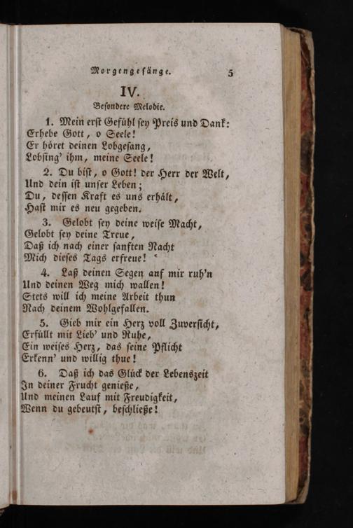 5. Gieb mir ein Herz voll Zuverſicht, Erfuͤllt mit Lieb' und Ruhe, Ein weiſes Herz, das ſeine Pflicht Erkenn' und willig thue!