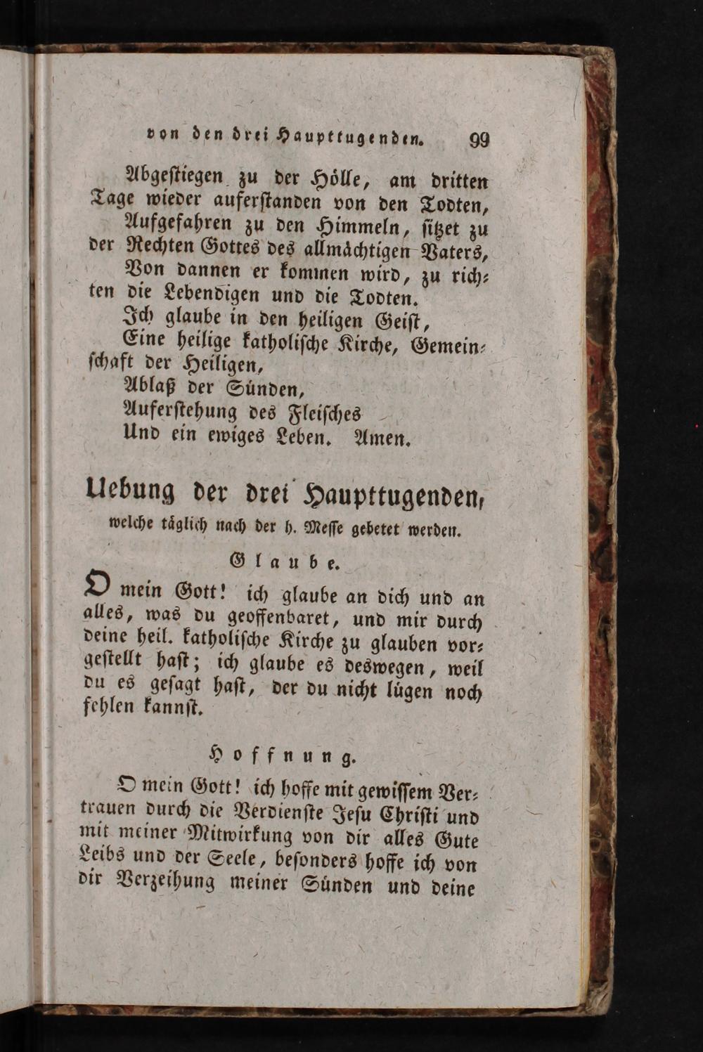 O mein Gott! ich glaube an dich und an alles, was du geoffenbaret, und mir durch deine heil. katholiſche Kirche zu glauben vor⸗ geſtellt haſt; ich glaube es deswegen, weil du es geſagt haſt, der du nicht lugen noch fehlen kannſt.