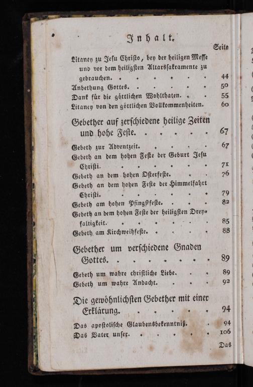 Inhalt. Seite Litaney zu Jeſu Chriſto, bey der heiligen Meſſe und vor dem heiligſten Altarsſakramente zu gebrauchen.„.. 2 44