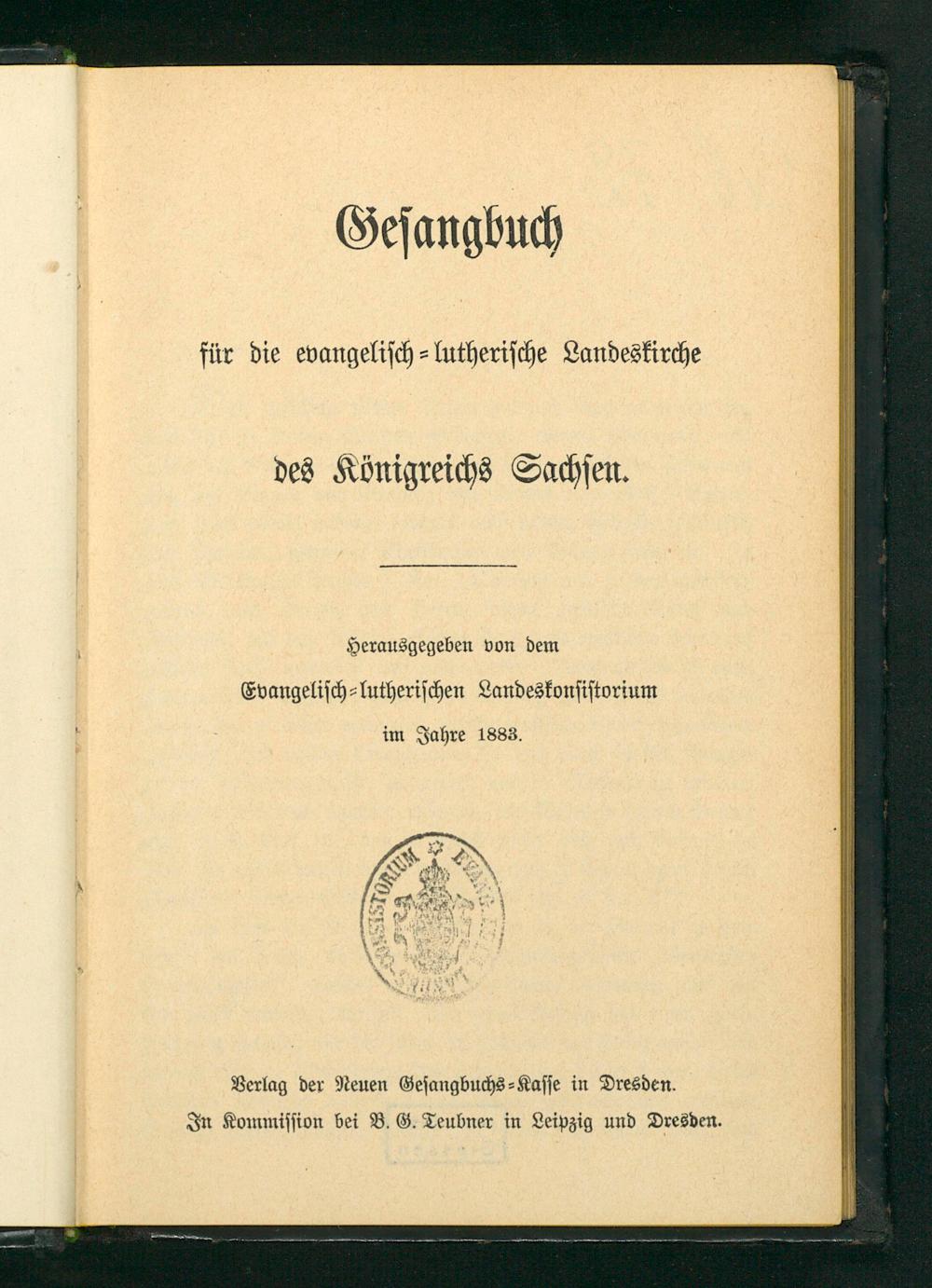 Gesangbuch für die evangelisch-lutherische Landeskirche des Königreichs Sachsen / hrsg. von dem Ev.-luth. Landeskonsistorium im Jahre 1883