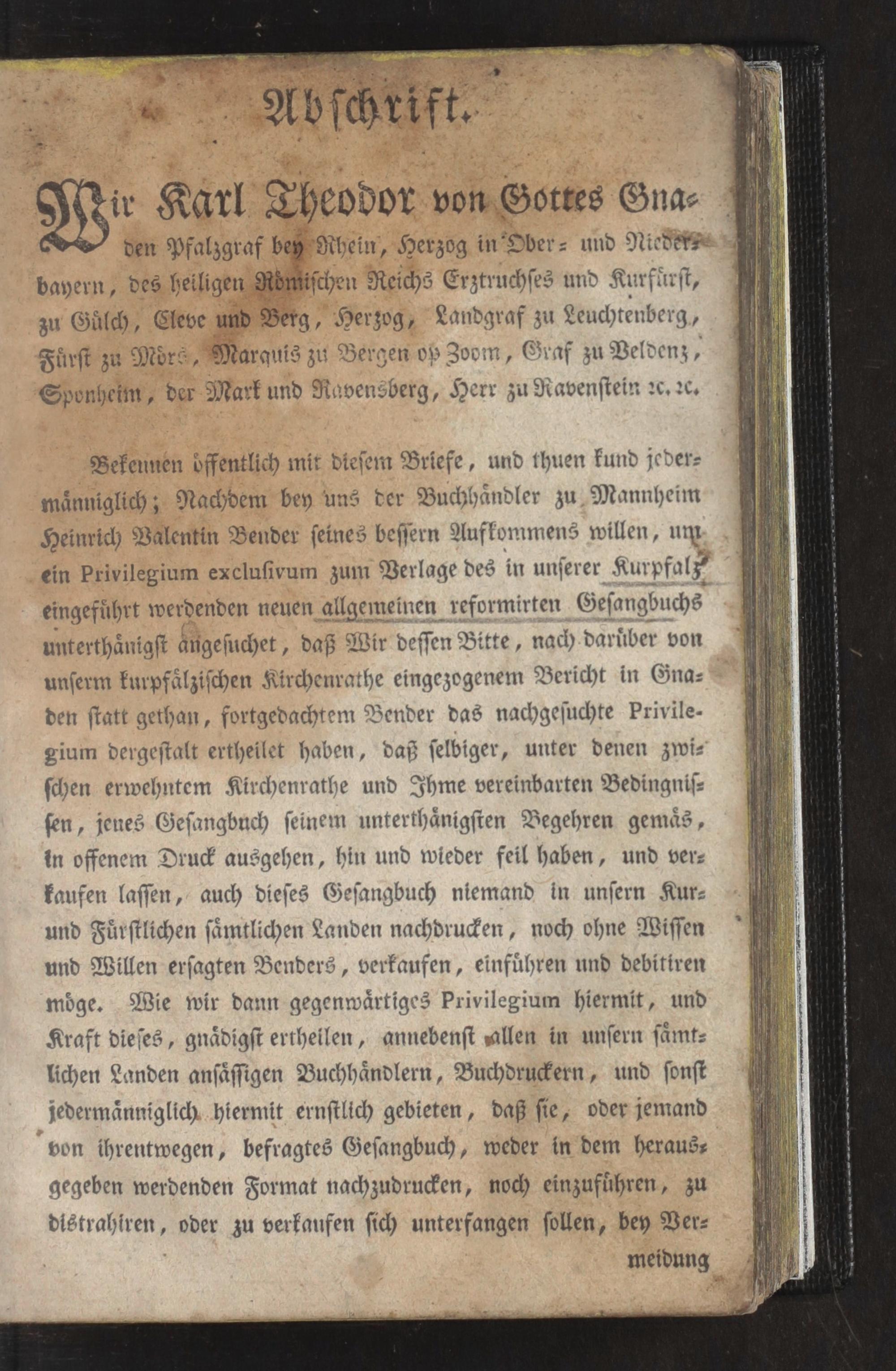Andachten die auch dem Gesangbuch zum gottesdienstlichen Gebrauch der Reformirten Gemeinden in Kurpfalz beygefügt werden können