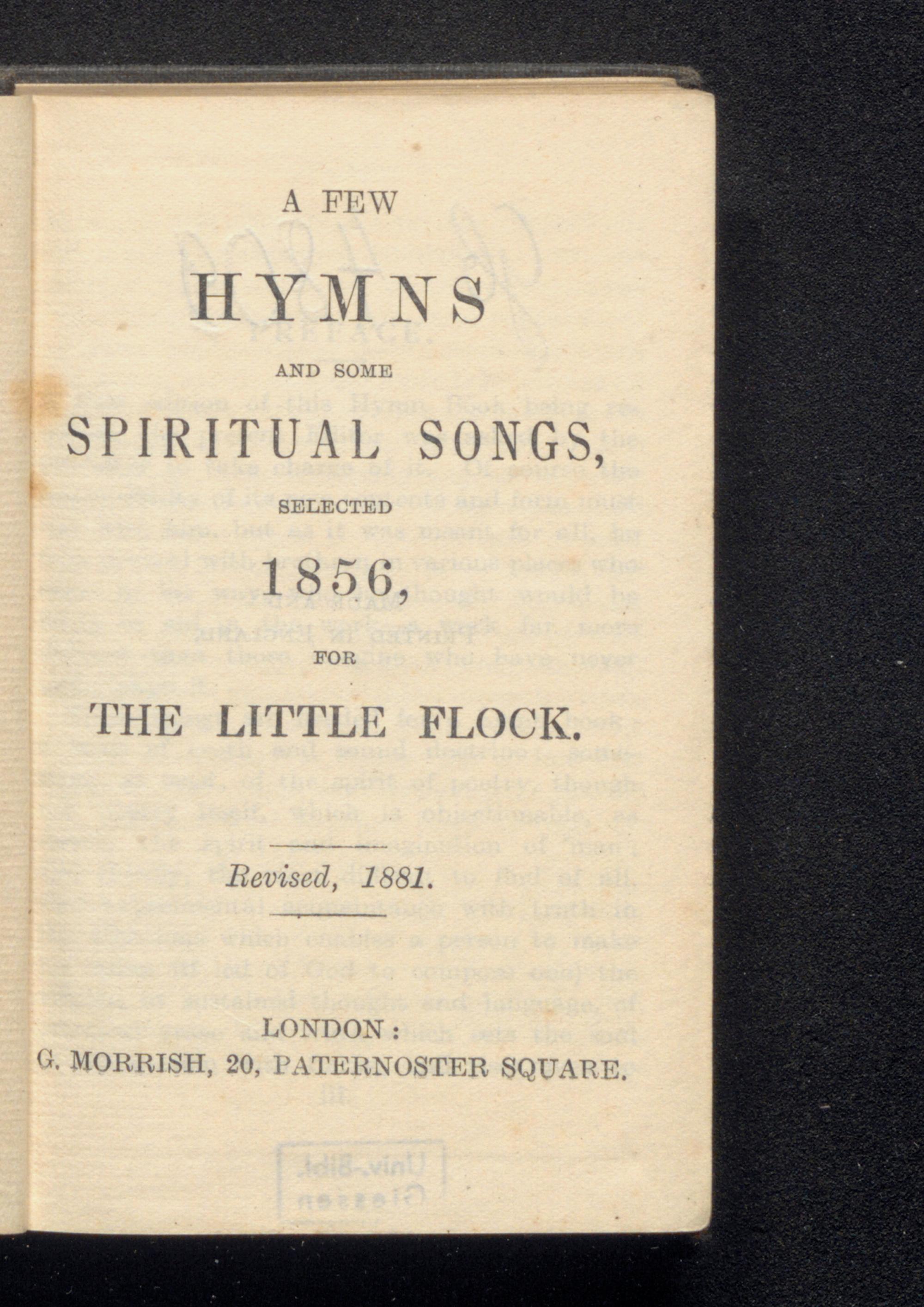A few Hynns and some Spiritual Songs, selected 1856, for the Little Flock