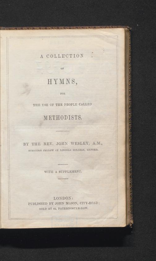 A Collection of Hymns, for the Use of the People Called Methodists / by John Wesley, A.M., sometime Fellow of Lincoln College, Oxford. With a Supplement