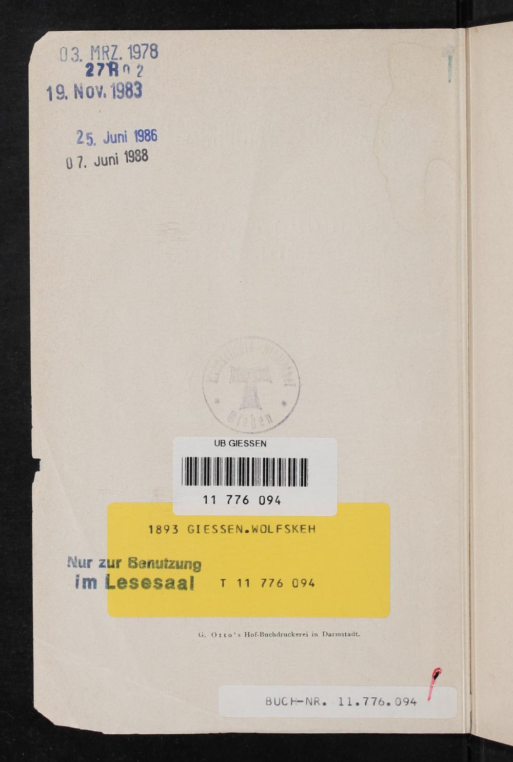 27R 12 19. Nov. 1983 25. Juni 1986 0 7. Wri 1988 0B GESSEMN Nur 2 im G6. Otto's Hof-Buchdruckerei in Darmstadt. ⸗