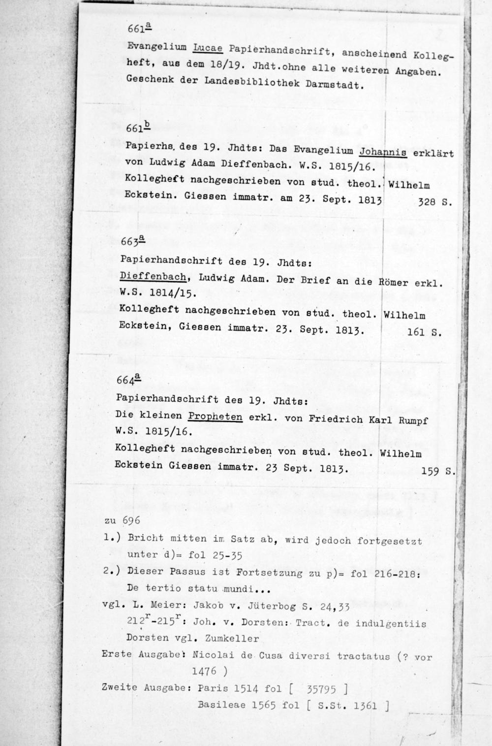 [Nachtrag] (1976) Katalog der Nachträge zum Gießener Handschriftenkatalog von Adrian (1840) 1840-1952 und der Anmerkungen zu den Handschriften 1840-1975 / [zusammengestellt von Johann Valentin Adrian]